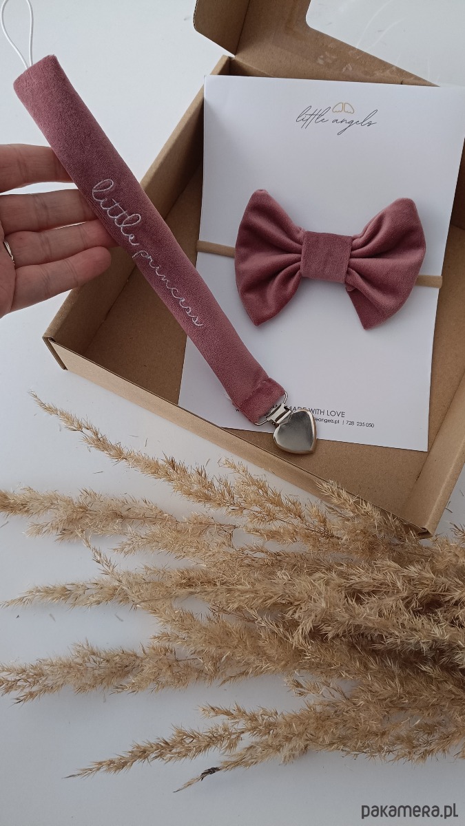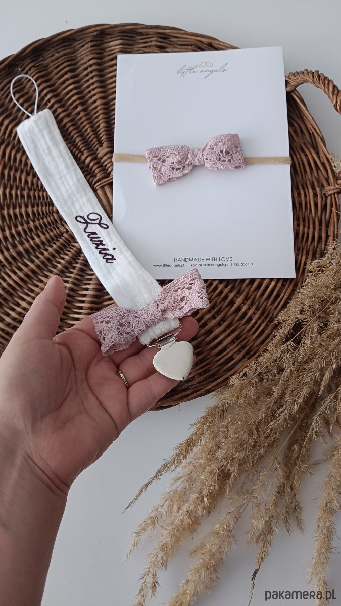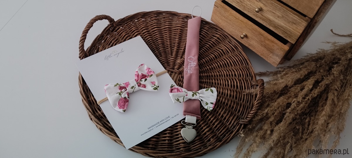 Zestaw prezentowy kokardka + zawieszka do smoczka (kolory, wzory, haft)