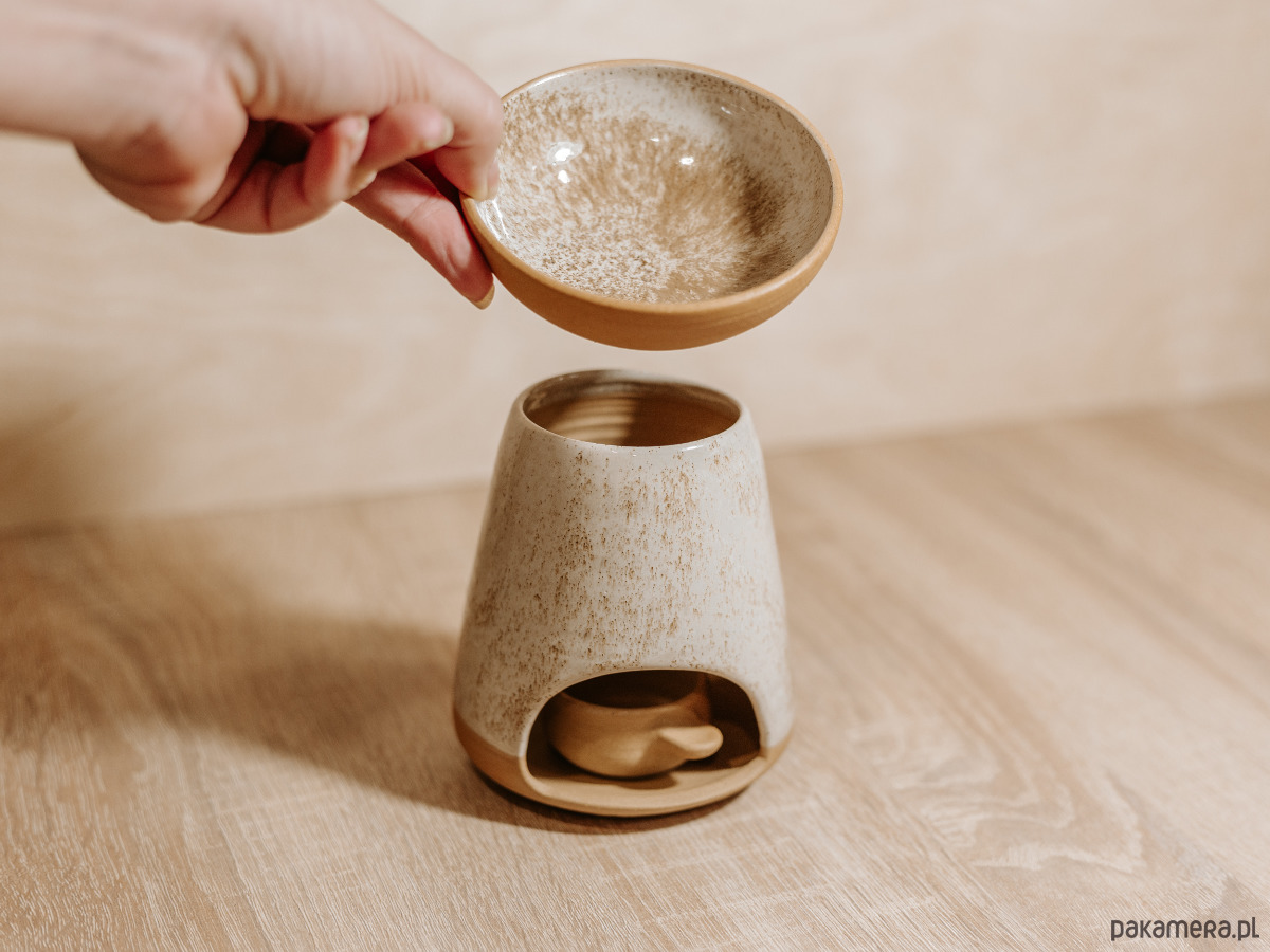 - ręcznie toczony ceramiczny kominek w kolorze Piasek