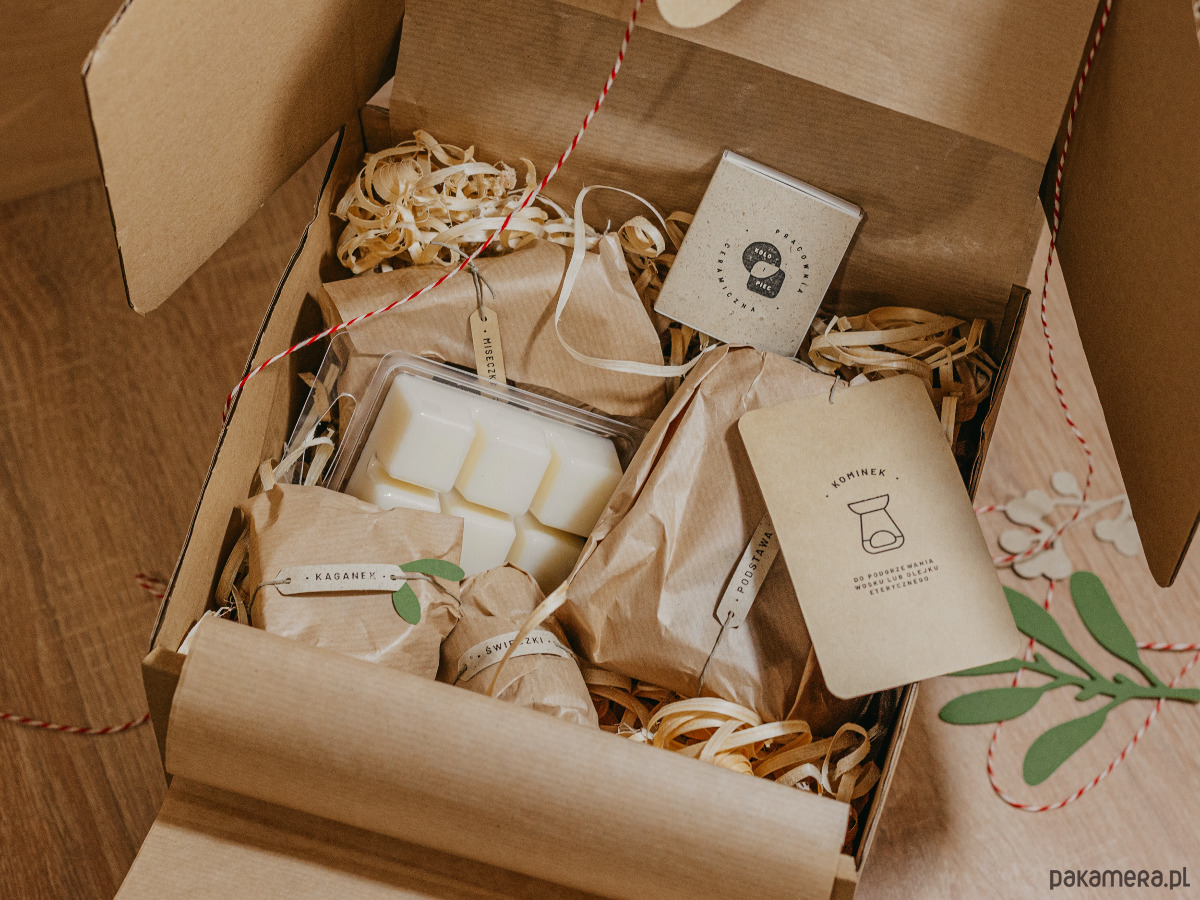 - opakowanie prezentowe - kartonowe pudełko z czerwono-białym sznurkiem, papierowymi ozdobnymi gałązkami i karteczką do podpisu. Pudełko zostanie dodatkowo owinięte w brązowy karton dla ochrony. Jeśli wysyłasz bezpośrednio do odbiorcy prezentu - wyślij mi wiadomość co napisać na karteczce. Jeśli najpierw zamawiasz do siebie - wstążka, ozdoby i karteczka będą w środku pudełka.
