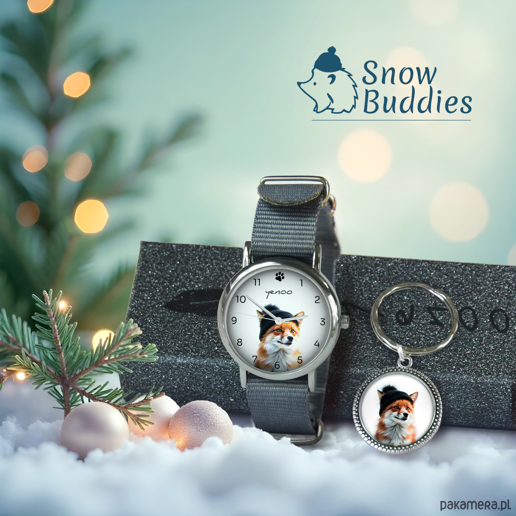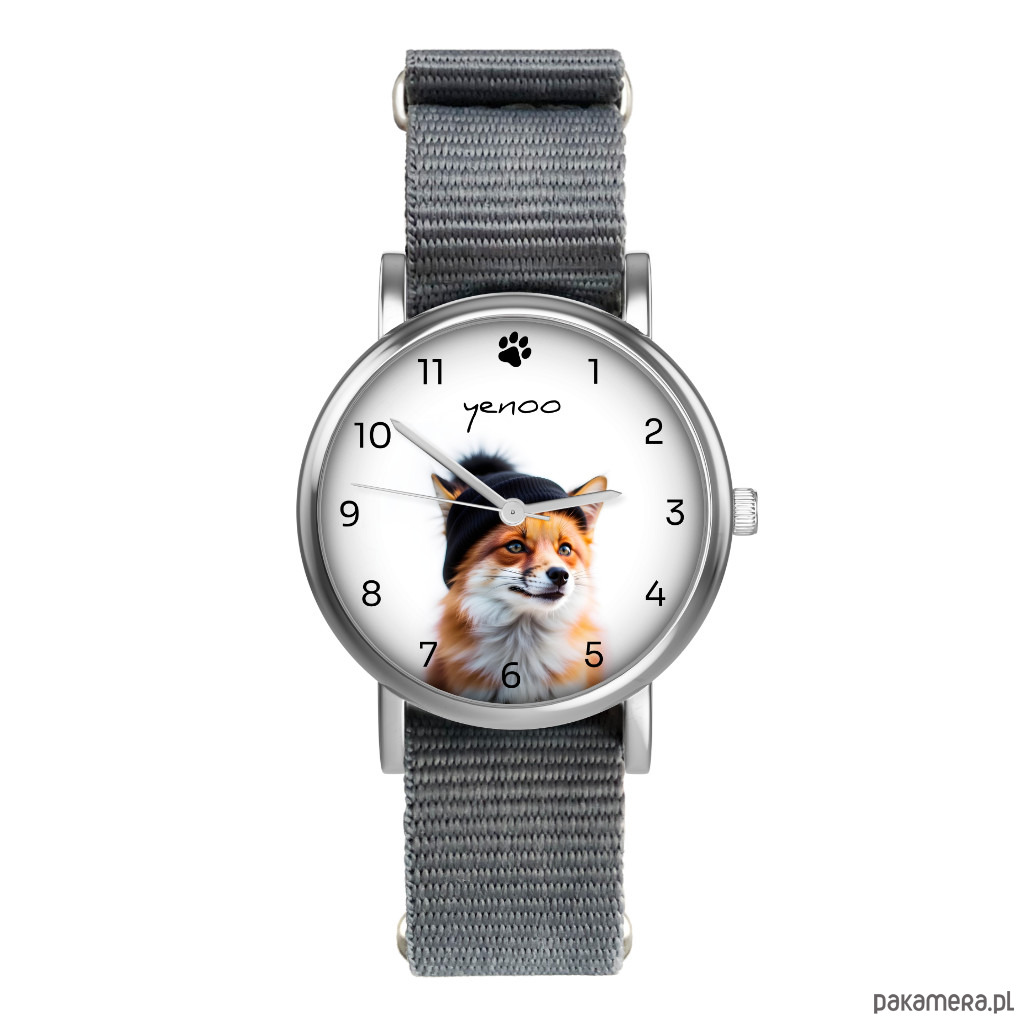 Zestaw prezentowy - Lisek - zegarek i brelok - nylonowy, szary