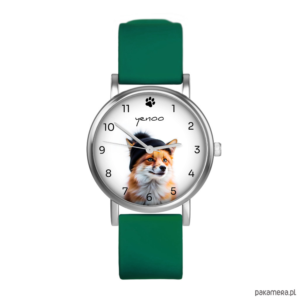 Zestaw prezentowy - Lisek - zegarek i brelok - silikonowy, zielony