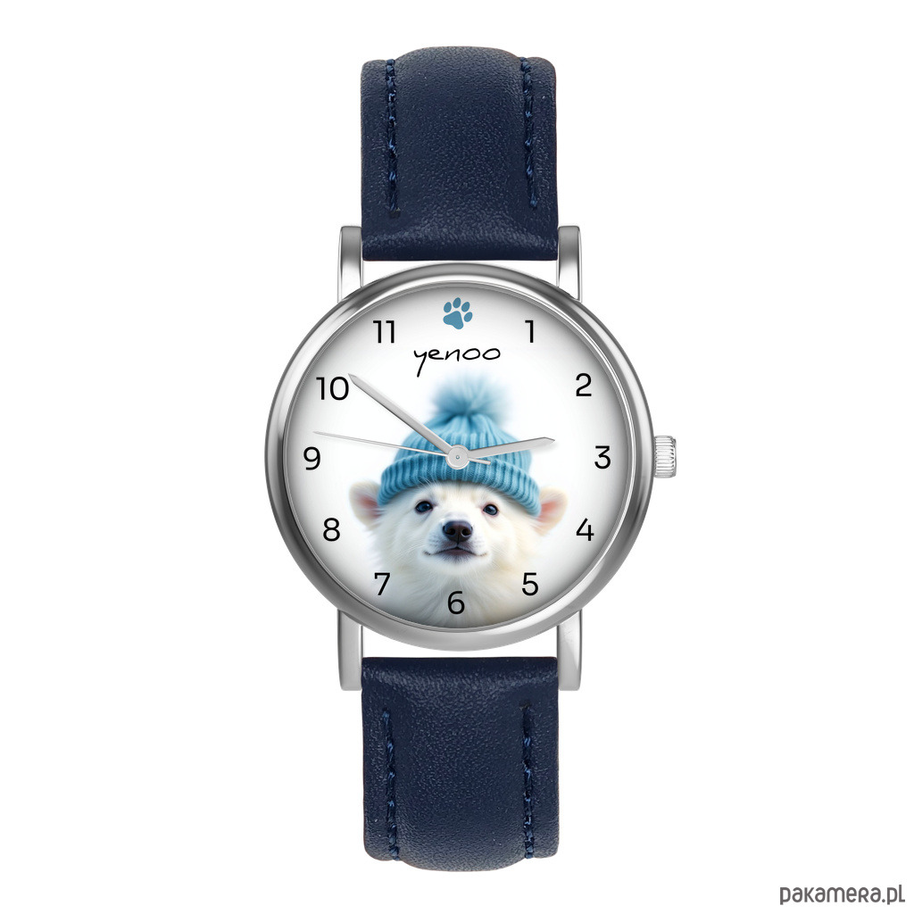 Zestaw prezentowy - Miś polarny - zegarek i brelok - skórzany, granatowy