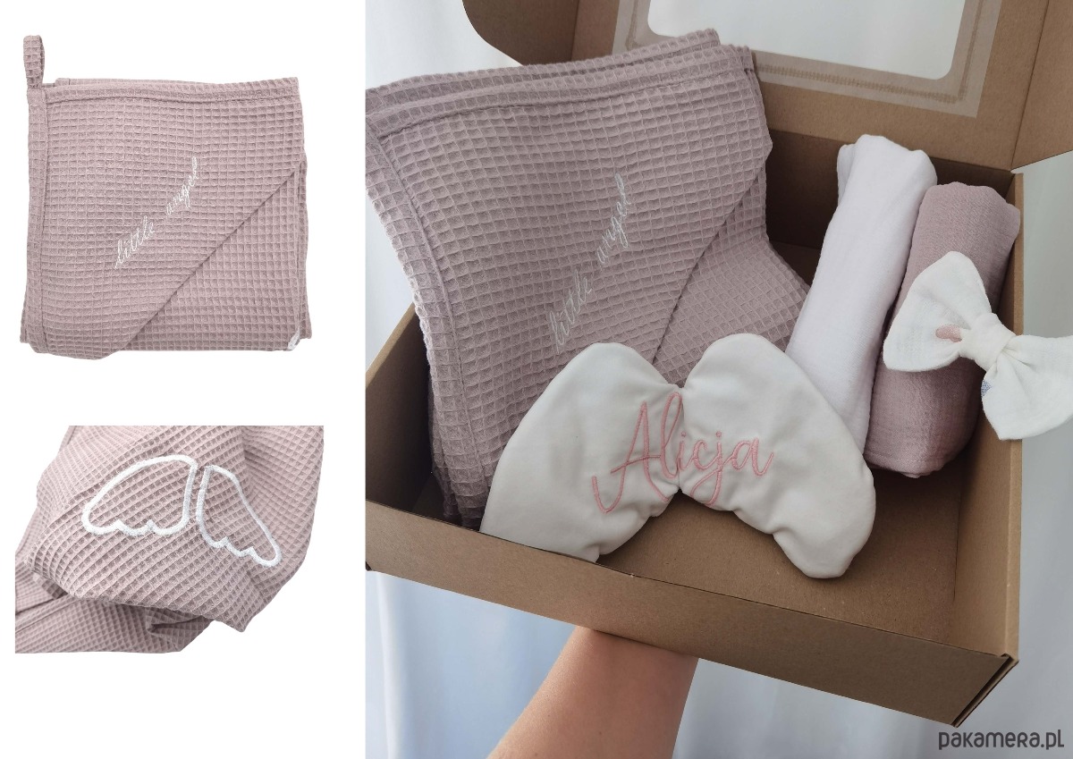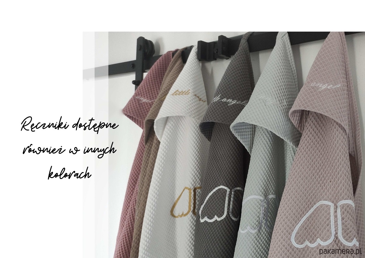- ręcznik małego aniołka (na kapturku ma napis little angel lub imię dziecka, na plecach skrzydła)