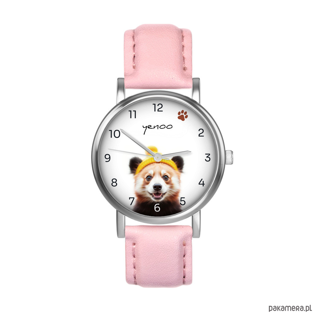 Zestaw prezentowy - Panda - zegarek i brelok - skórzany, różowy