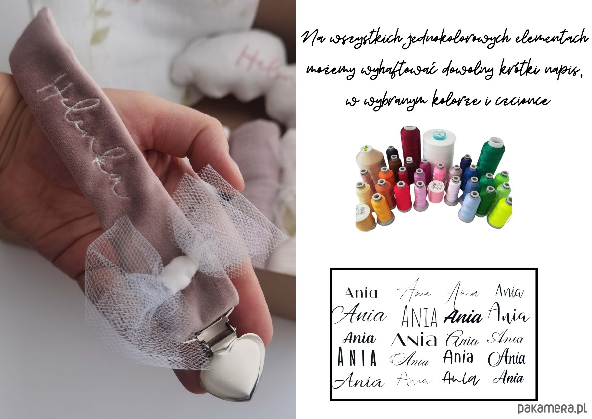 - zawieszka do smoczka lub kokardka do włosów (na opasce bezuciskowej lub zawieszce)