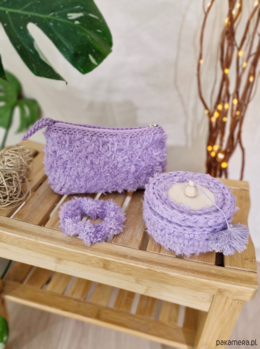 Zestaw prezentowy pod choinkę - kosmetyczka, gumka i szkatułka - lila