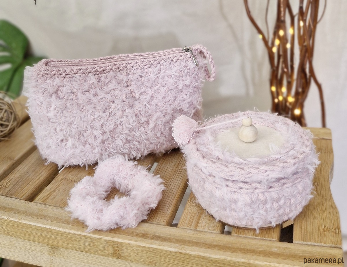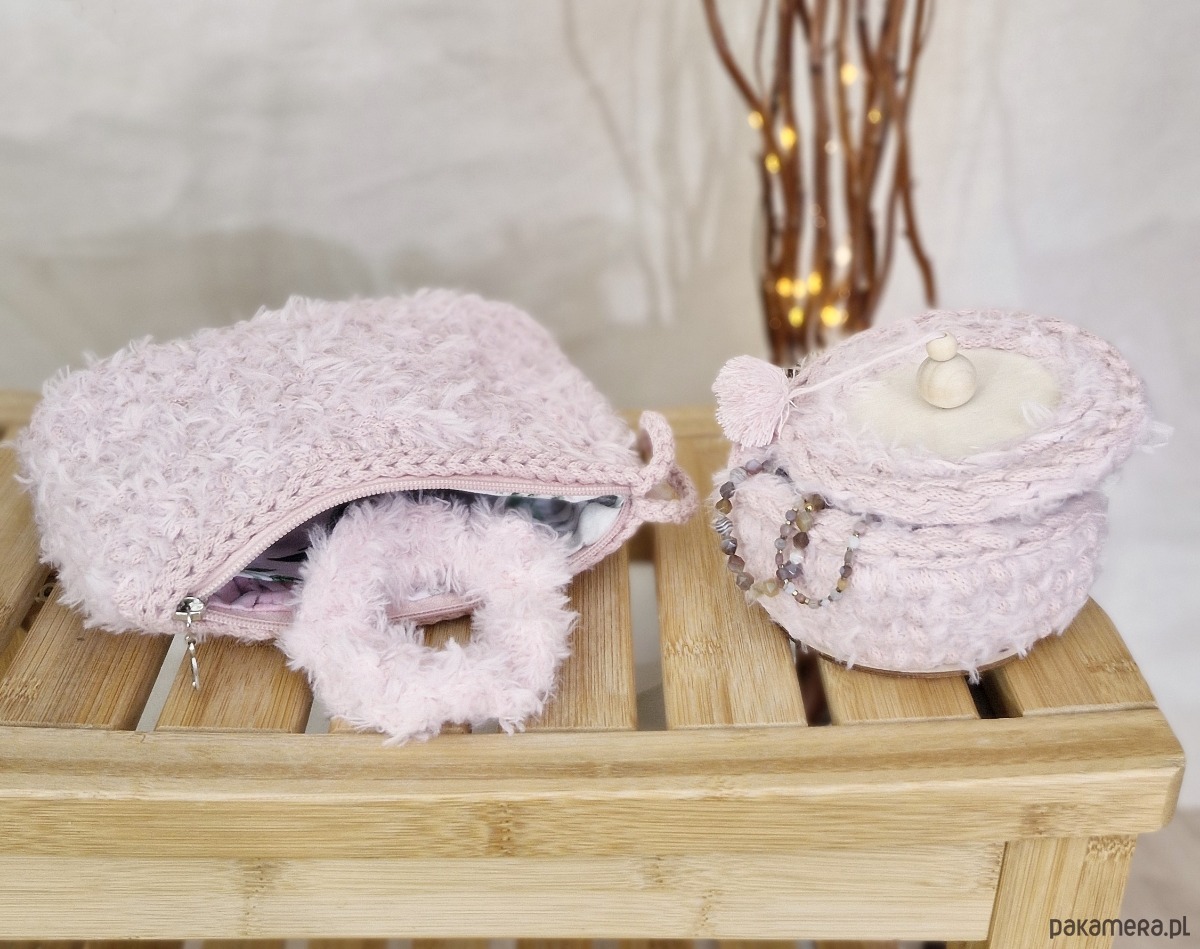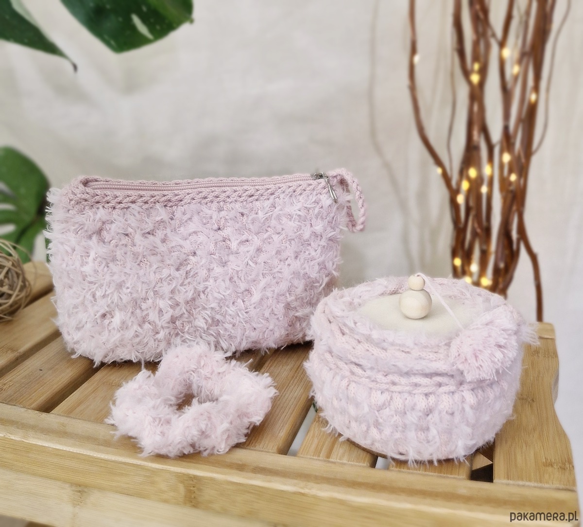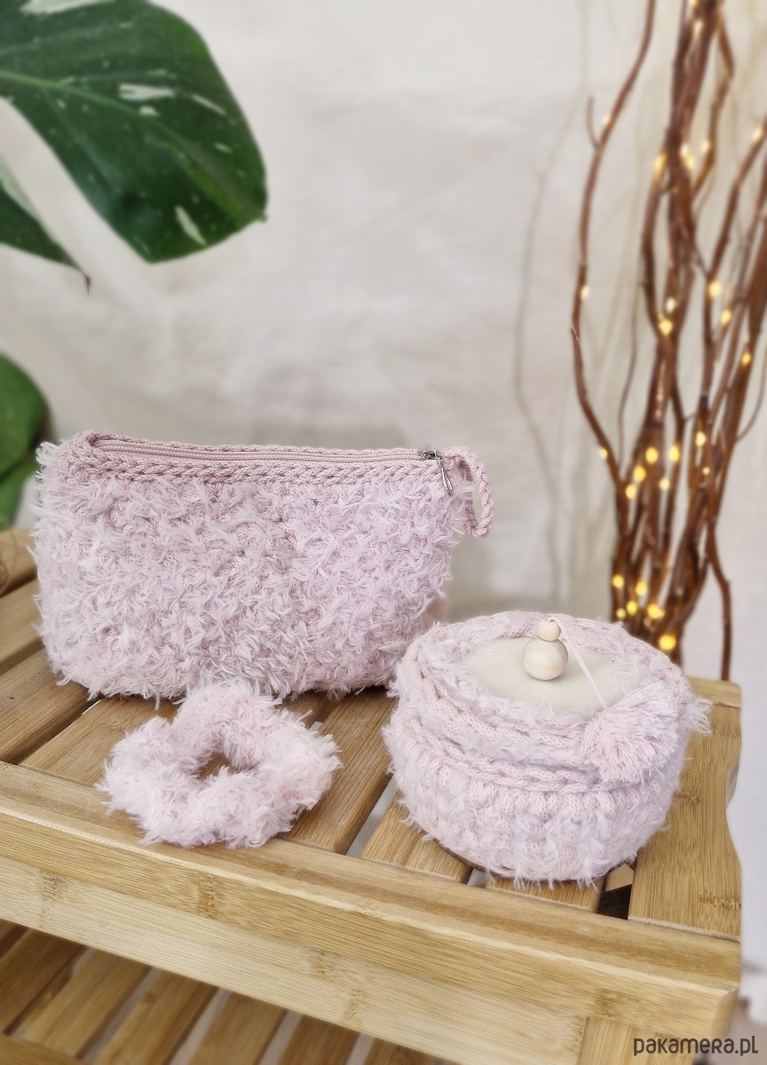 Zestaw prezentowy pod choinkę - kosmetyczka, gumka i szkatułka - pudrowy