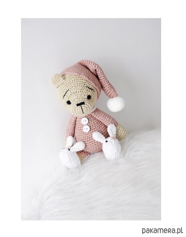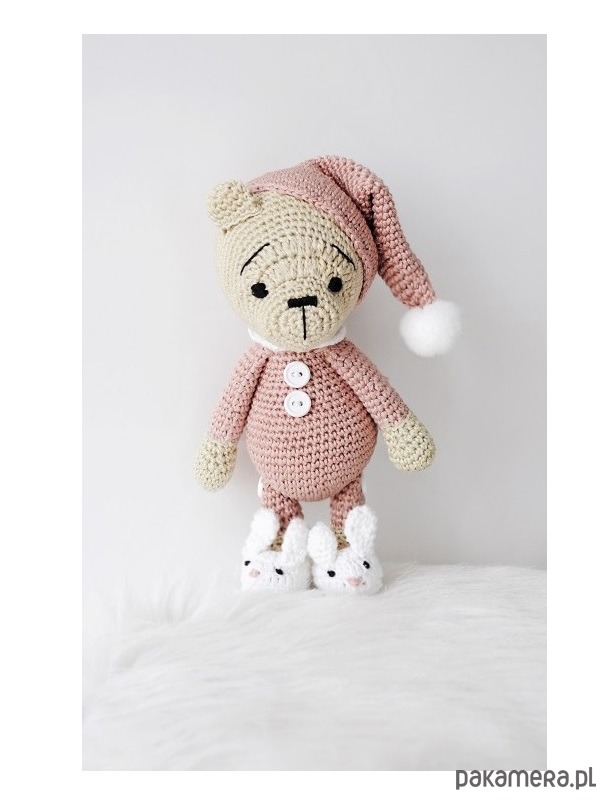 - Śpiocha: wielkość misia ok. 20cm. Czapka i kapcie nie są zdejmowane. Produkt zawiera małe elementy - guziki przy tułowiu i pompon.