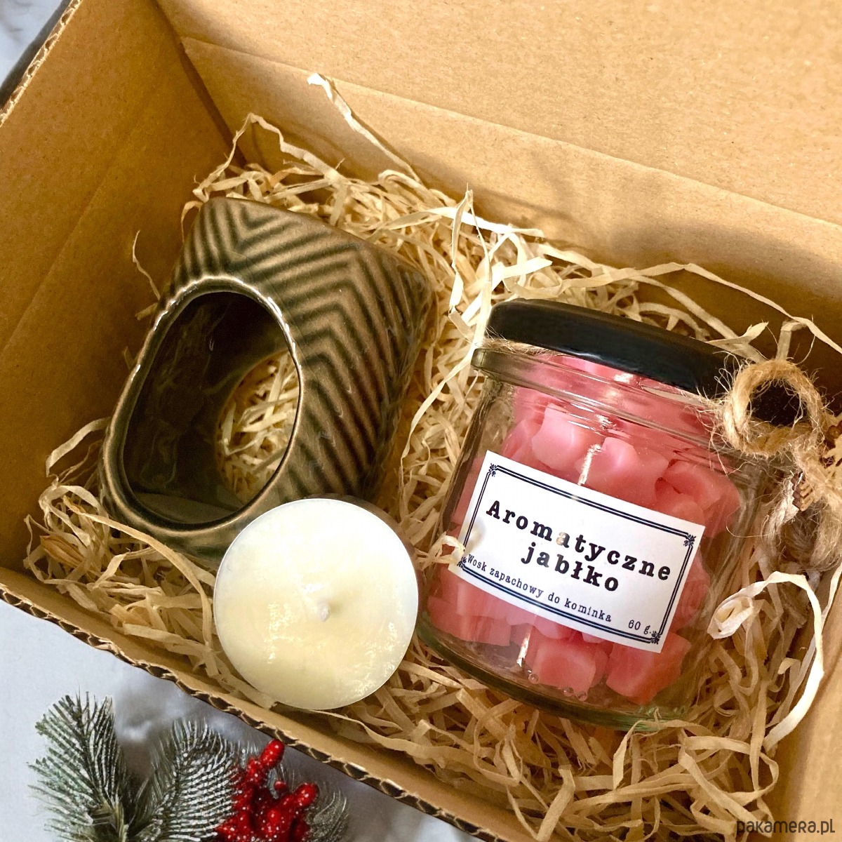 Zestaw prezentowy świąteczny z kominkiem i woskiem zapachowym
