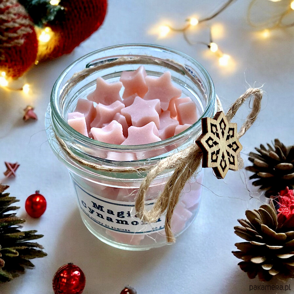 -wosk sojowy w kształcie gwiazdek o zapachu cynamonu, 60 g.;