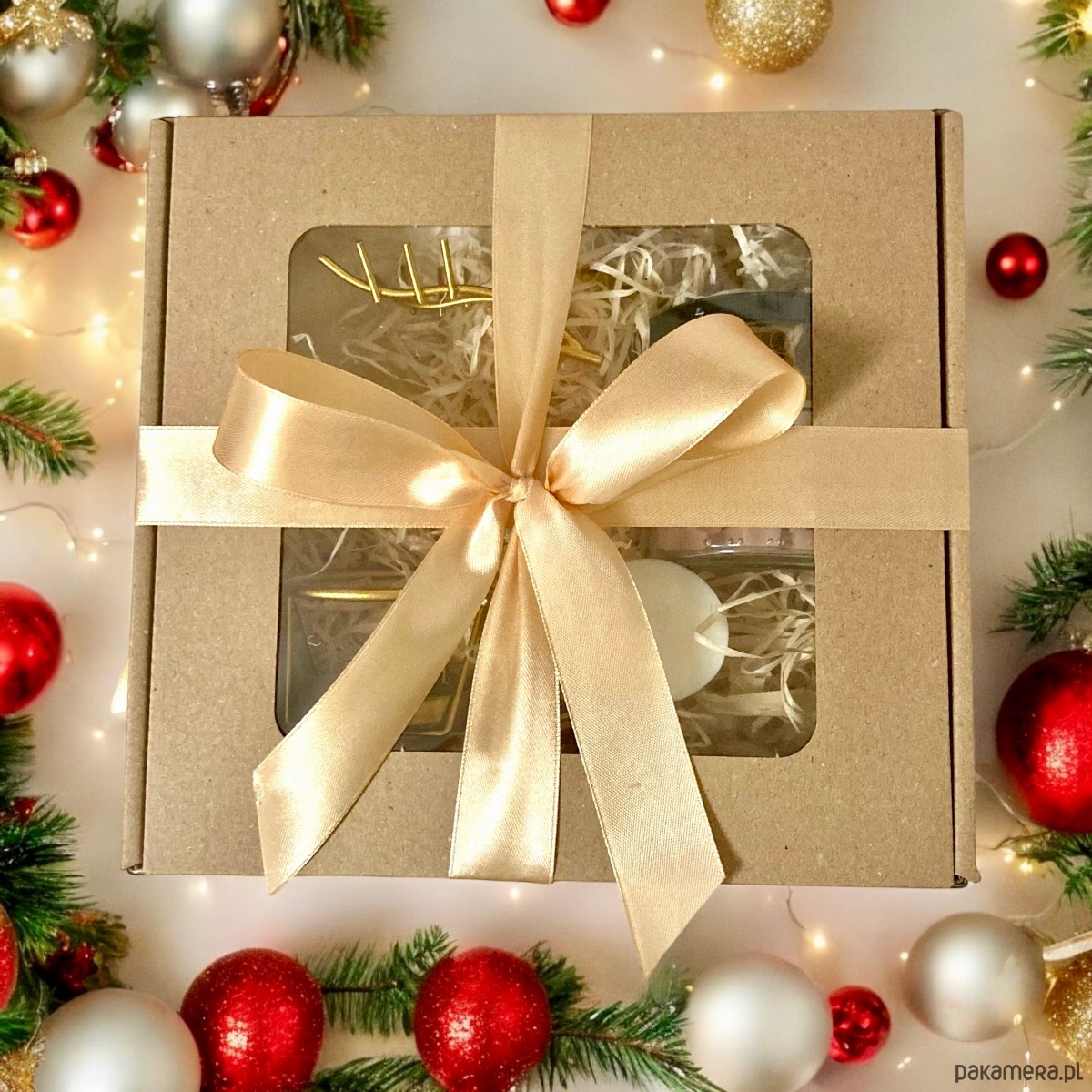 Całość zapakowana jest w estetyczne pudełko prezentowe i przewiązane wstążką.