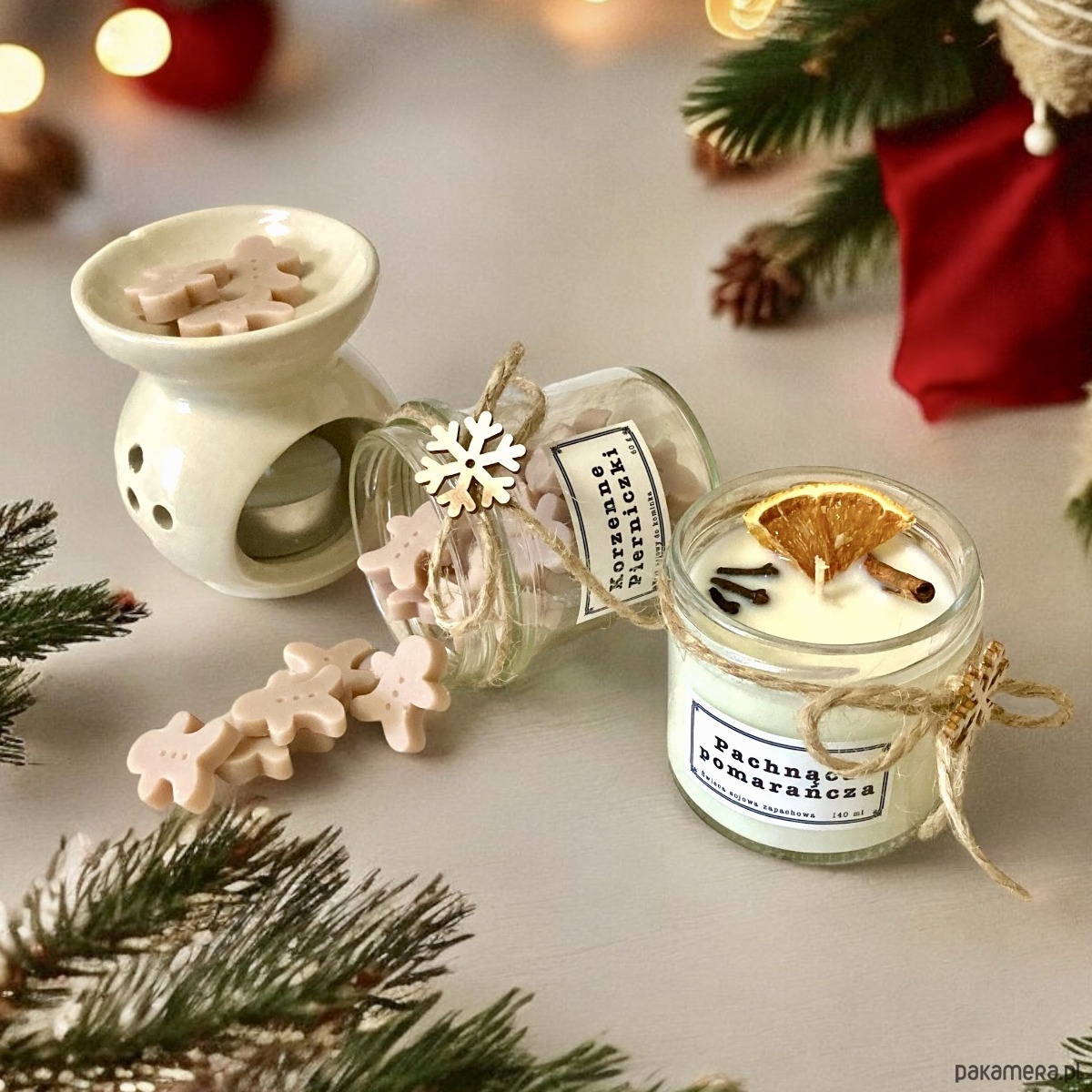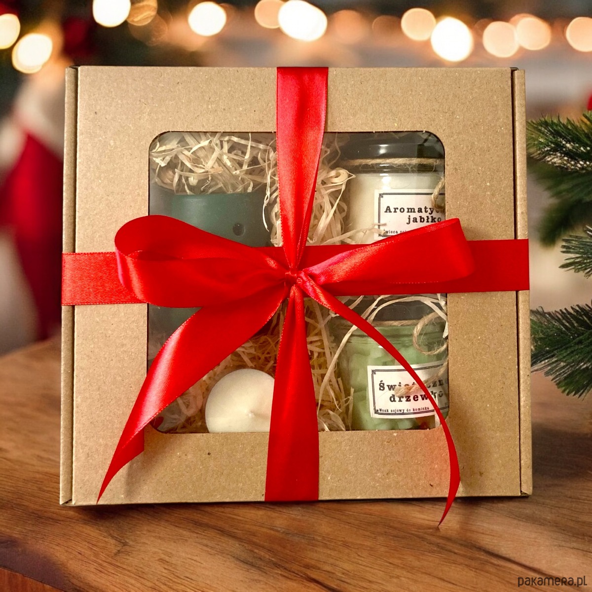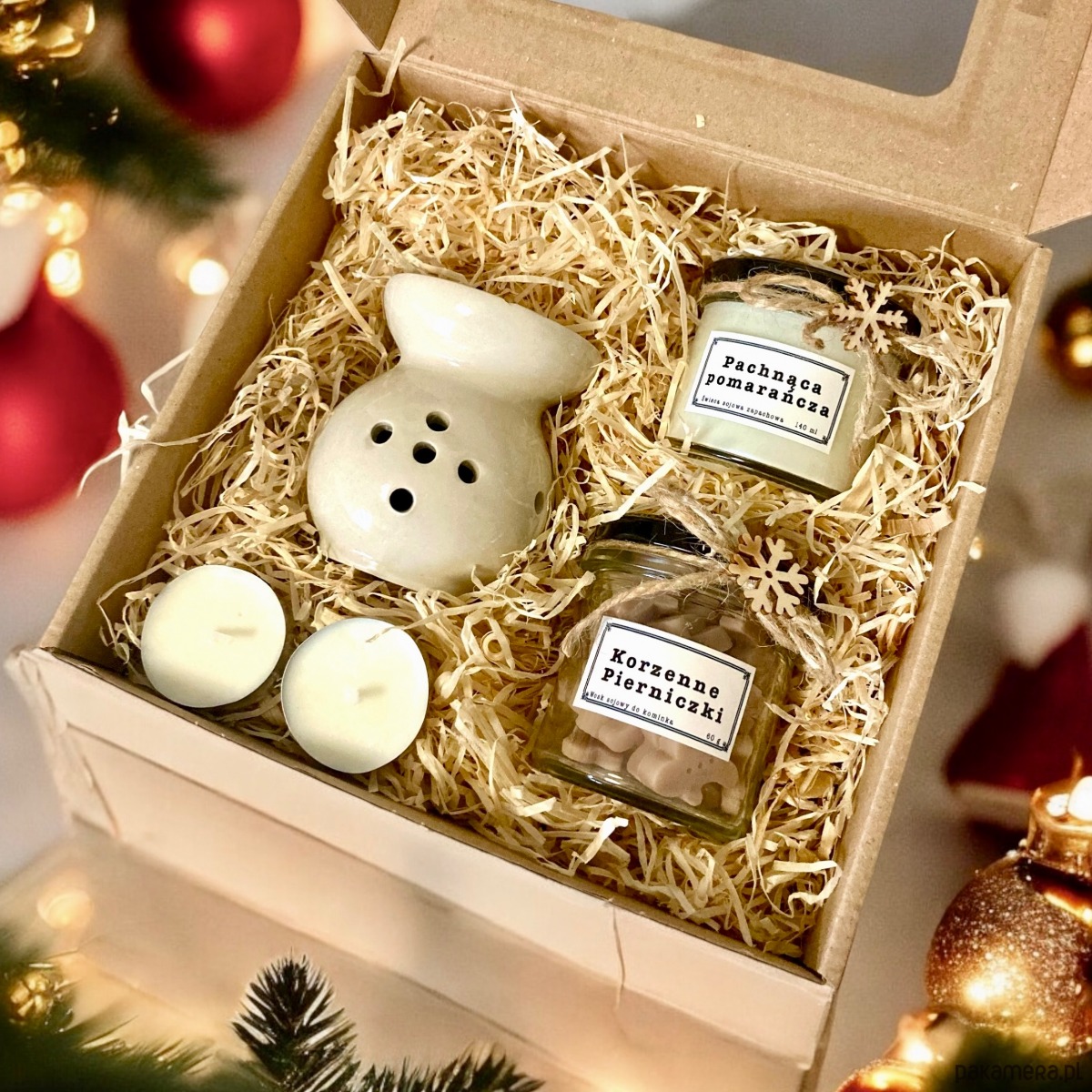 Zestaw prezentowy świąteczny z kominkiem, woskiem zapachowym i świecą