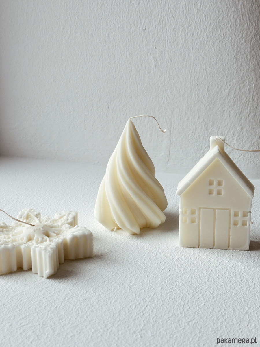 W skład zestawu wchodzą 3 świece wolnostojące( gwiazdka, domek, choinka ) o zapachu Cinamon&Apple i wosk zapachowy do kominka- zapachy do wyboru: