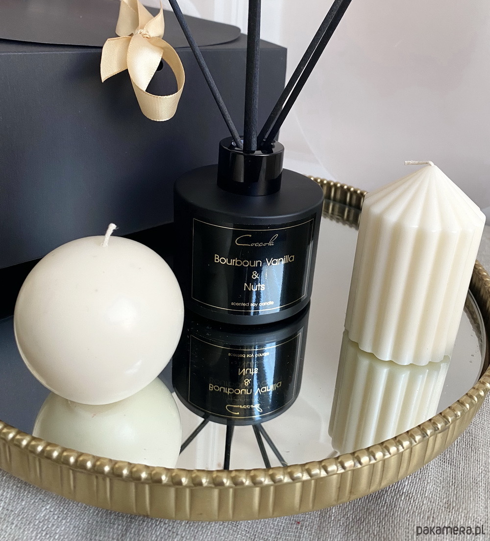 - dyfuzor zapachowy o zapachu Bourbon Vanilla & Nuts; zapach ciepły, otulający, elegancki; kompozycja łącząca aksamitną słodycz vanilli z nutami prażonych orzechów i karmelu