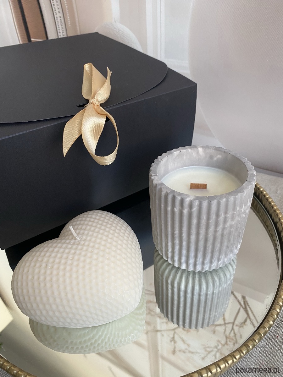 Wprowadź do swojego wnętrza ciepły, elegancki klimat dzięki luksusowemu zestawowi ręcznie wykonanych świec w odcieniu bieli i szarości.