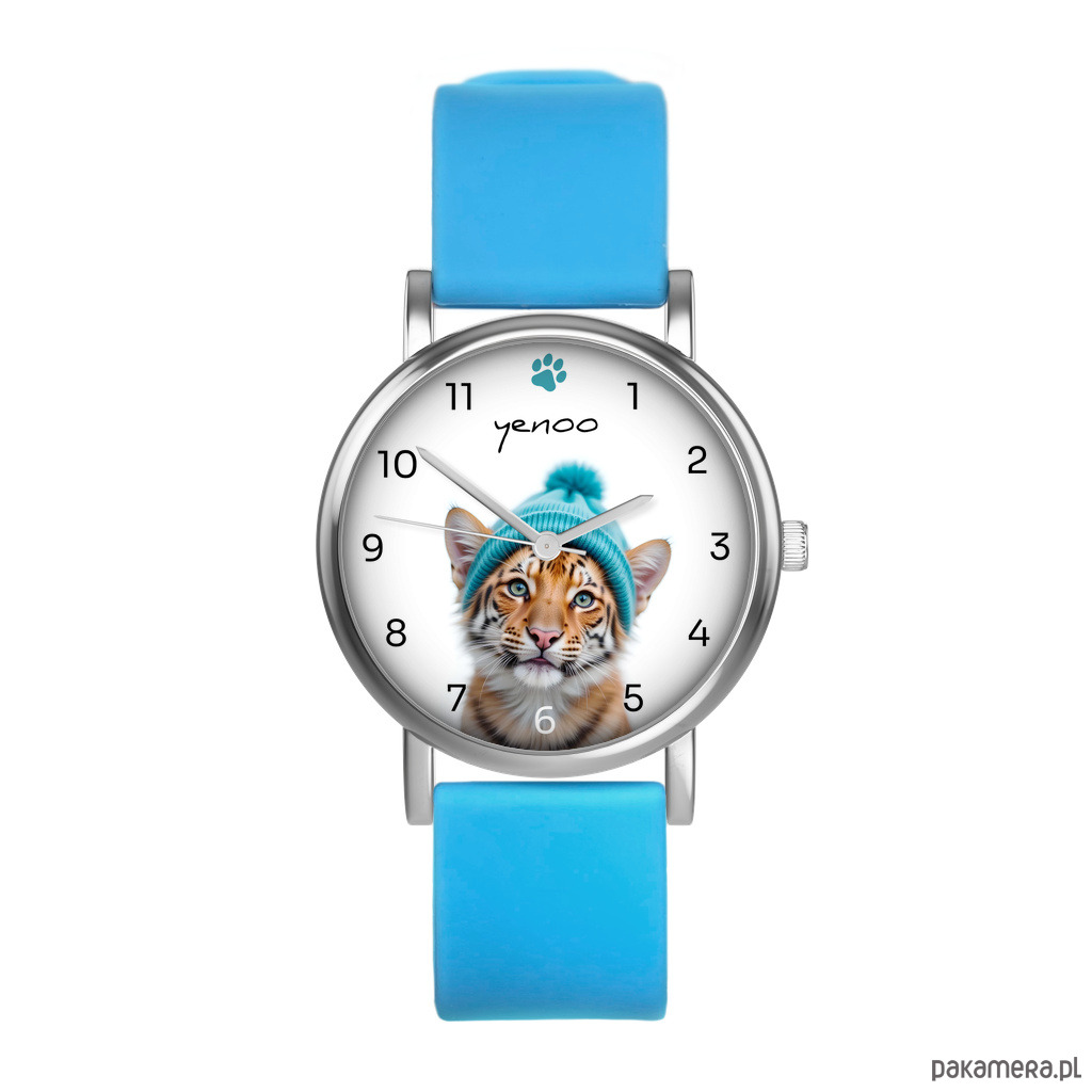 Zestaw prezentowy - Tygrys - zegarek i brelok - silikonowy, niebieski