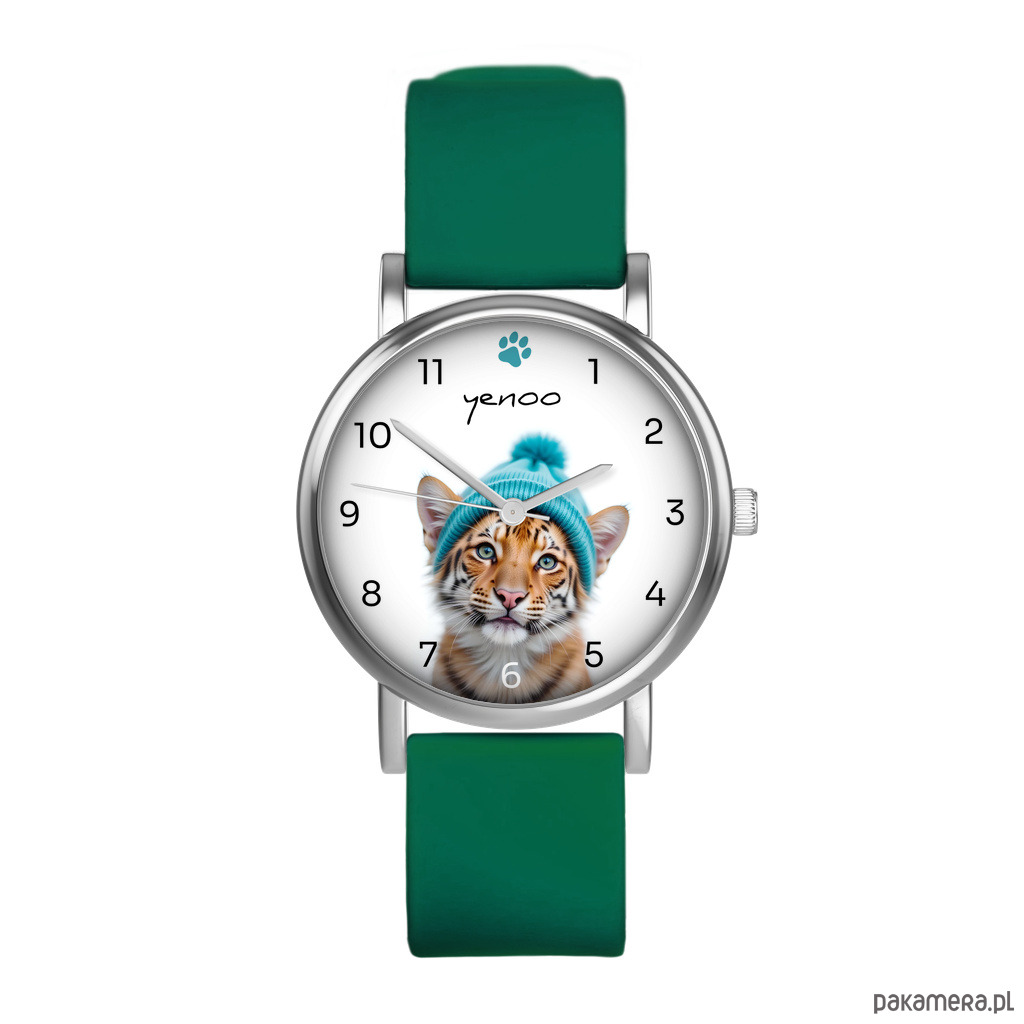 Zestaw prezentowy -Tygrys - zegarek i brelok - silikonowy, zielony