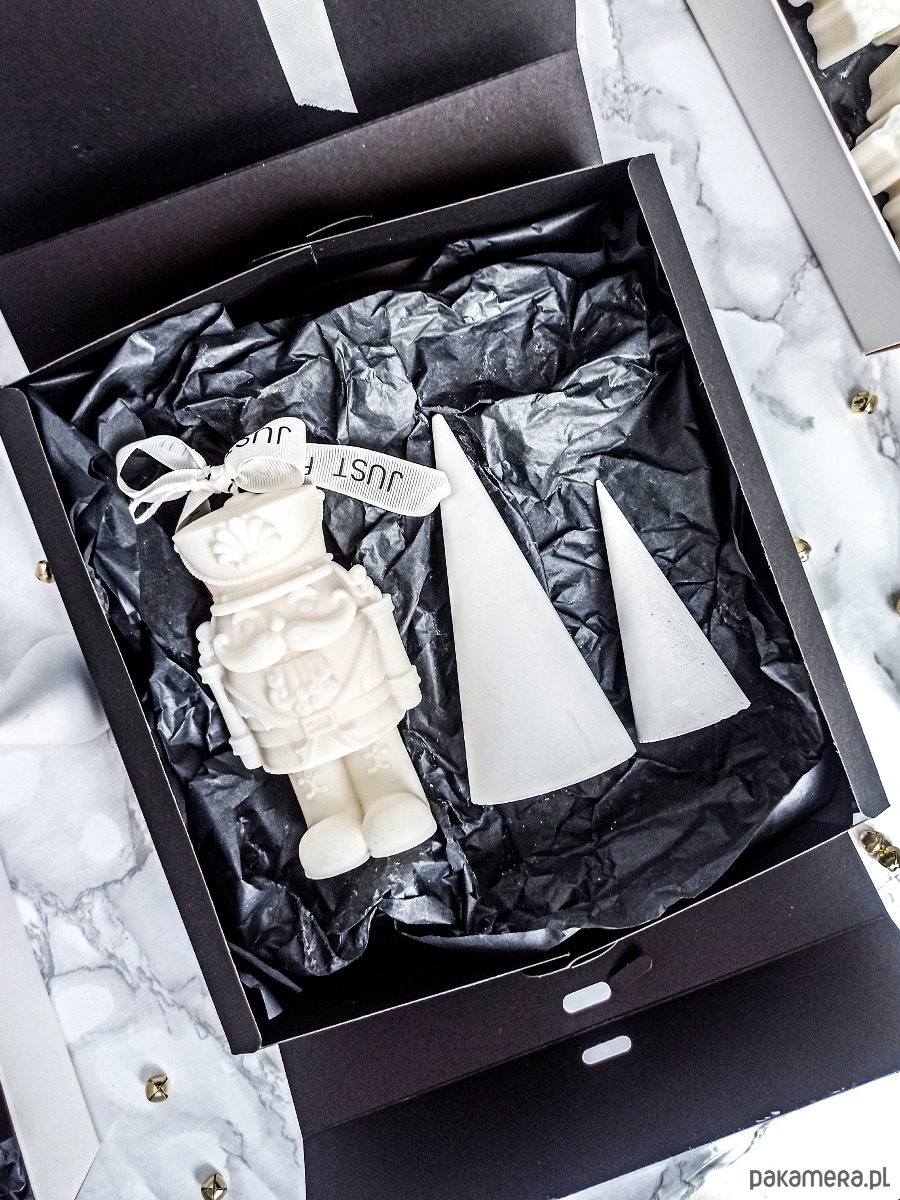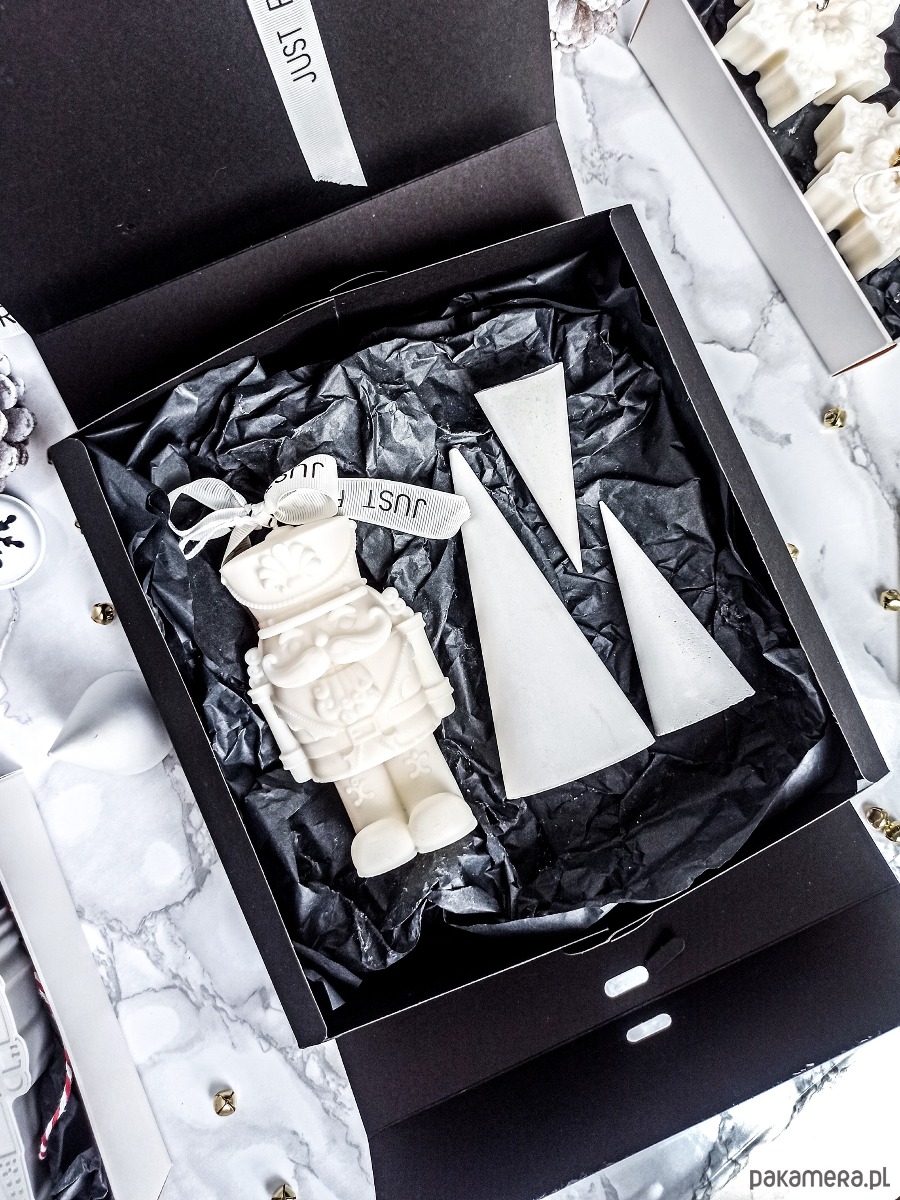 1 szt. duża świeca sojowa Dziadek do orzechów, 2 szt Choinek Stożków