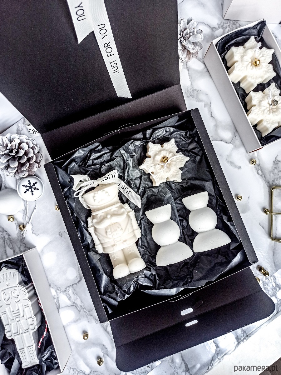 Sposób na stworzenie ciepłego, radosnego świątecznego klimatu. Ręcznie wykonane dekoracje z białego betonu architektonicznego będą pięknym dodatkiem do Świątecznego wystroju, a elegancka świeca sojowa w kształcie Dziadka do orzechów otuli przyjemnym blaskiem.