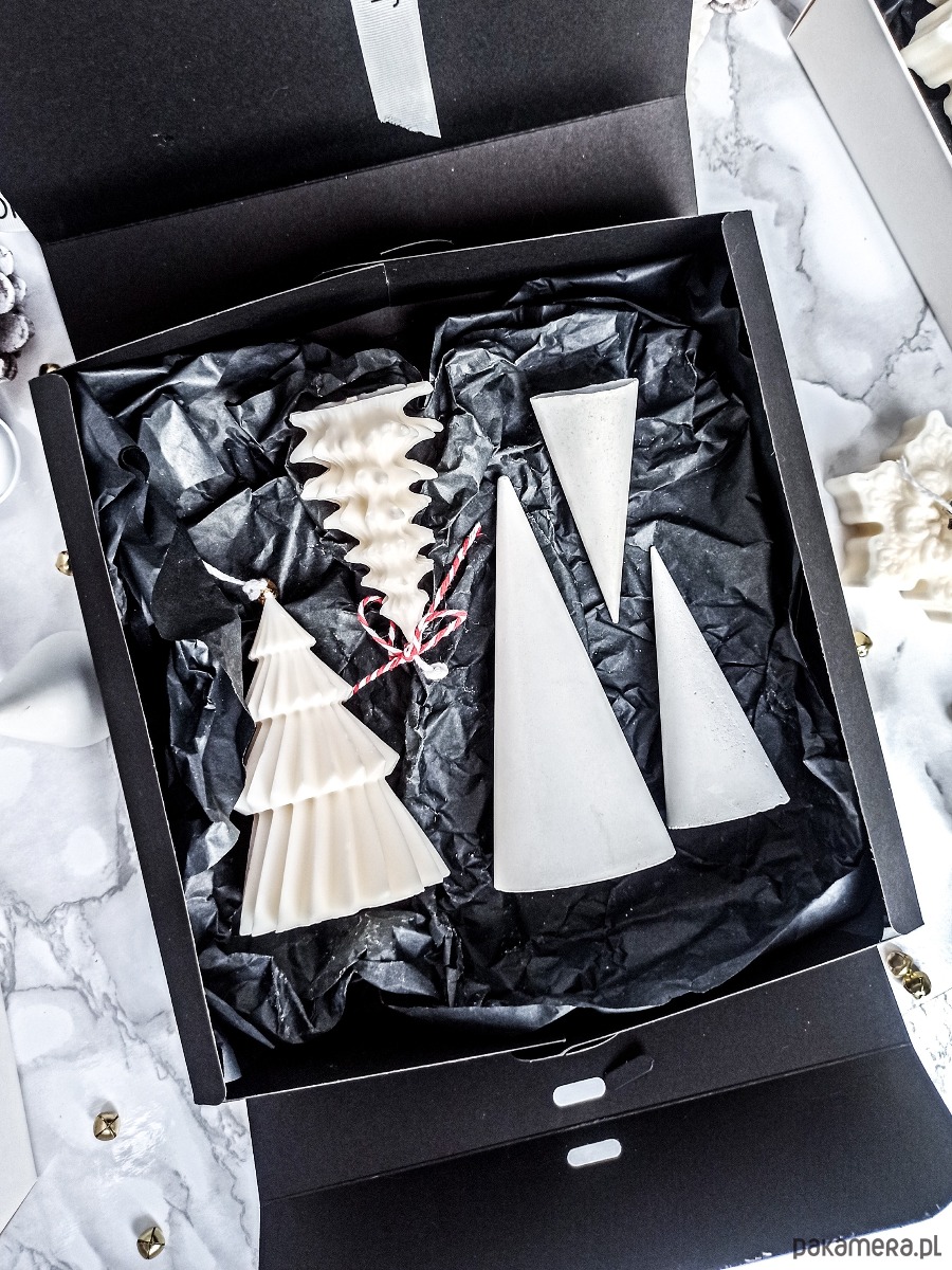 Sposób na stworzenie ciepłego, radosnego świątecznego klimatu. Ręcznie wykonane dekoracje z białego betonu architektonicznego będą pięknym dodatkiem do Świątecznego wystroju, a eleganckie świece sojowe w kształcie Choinek dodadzą