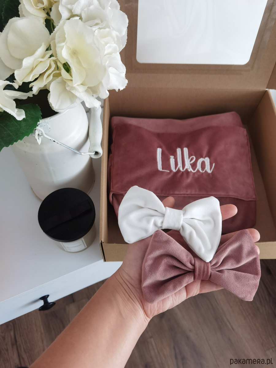 Zestaw prezentowy - workoplecak + kokardki velvetowe - personalizowane, kolory