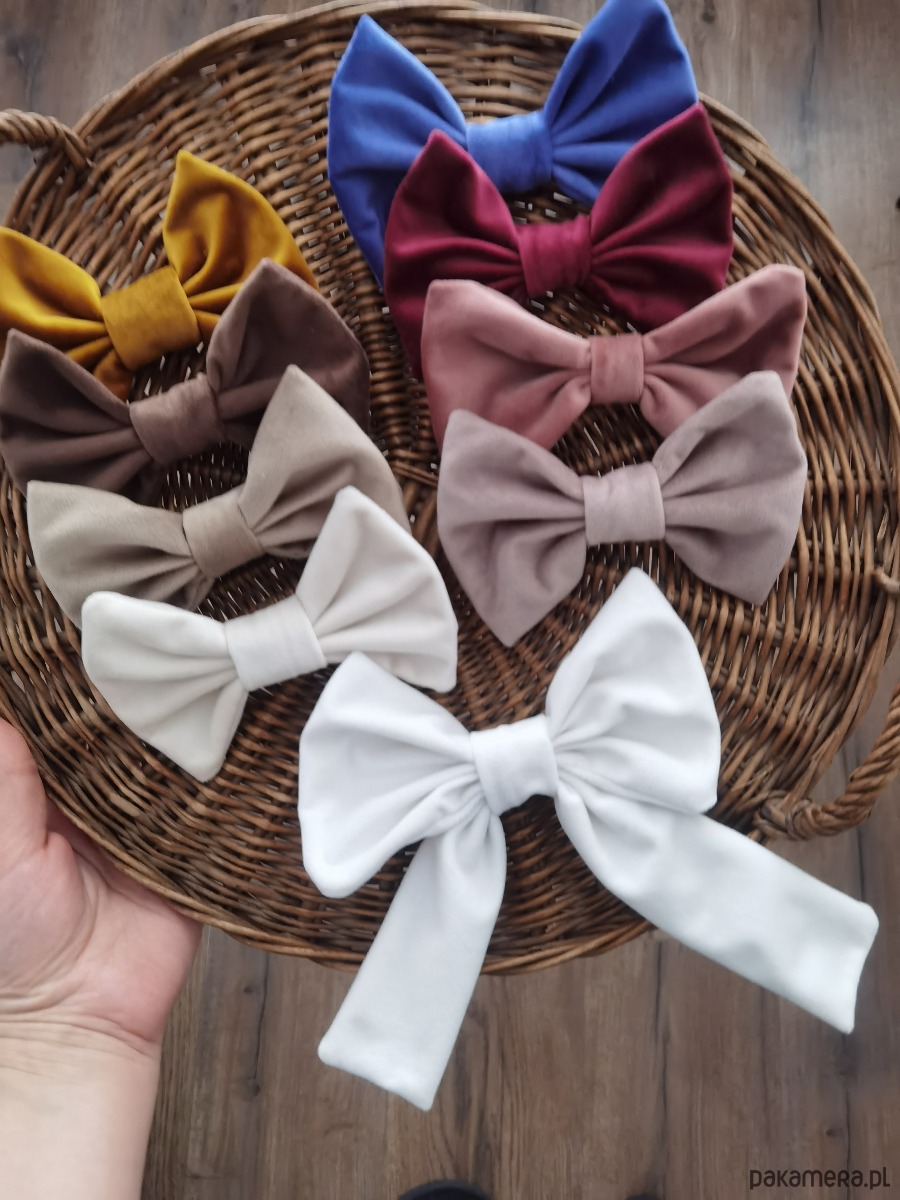 Do plecaczka dwie kokardki do włosów (na opasce bezuciskowej, spince lub gumce).