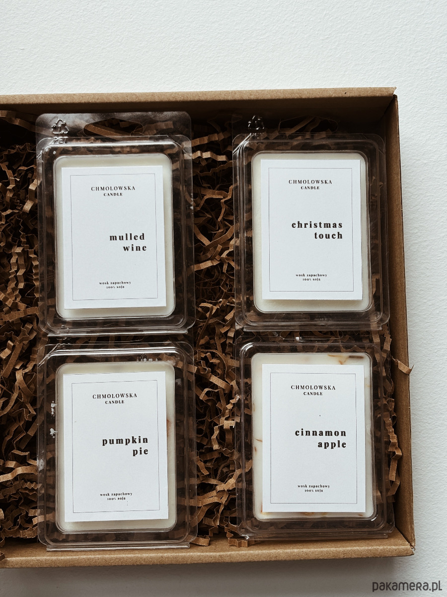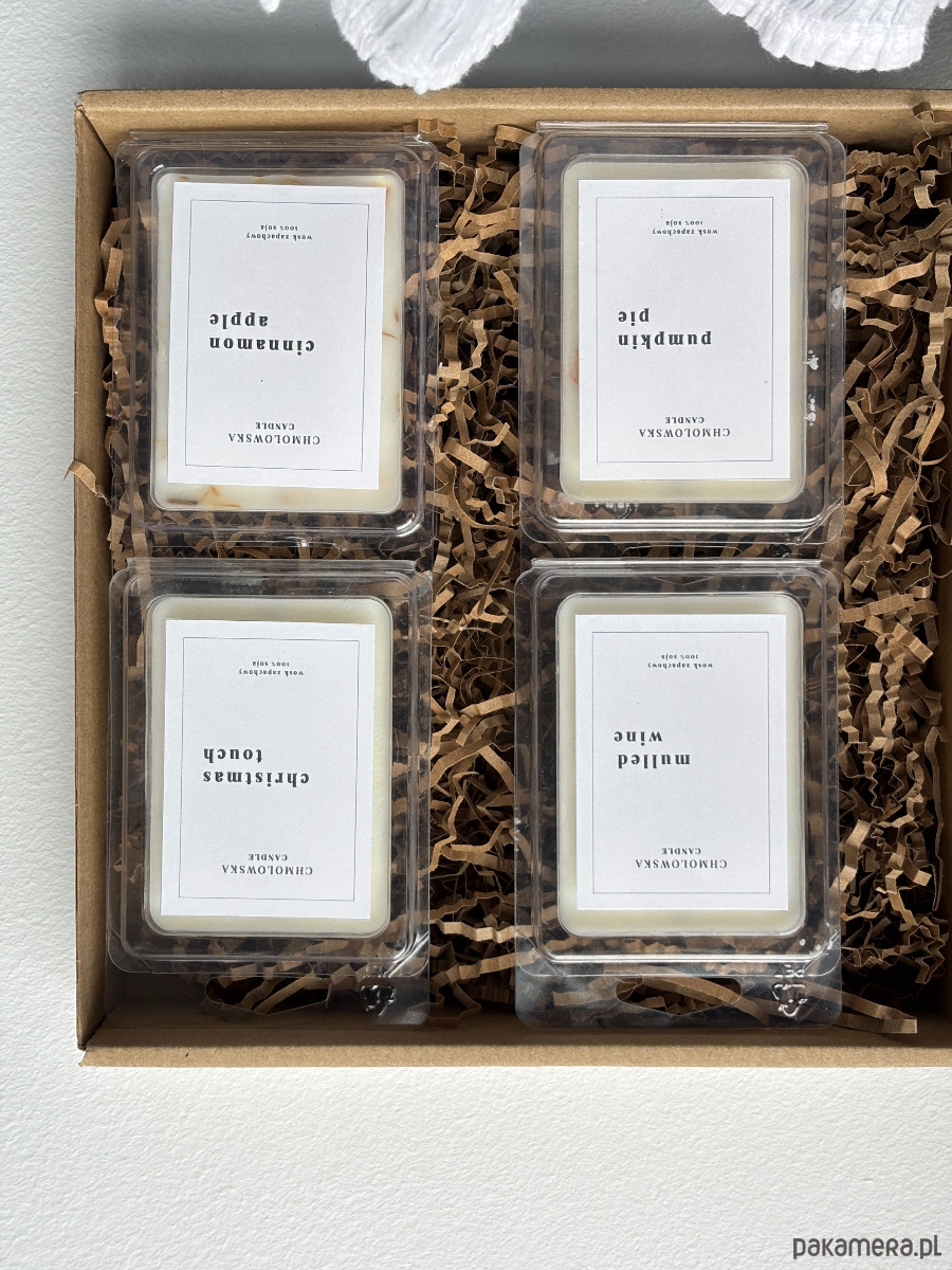 W skład zestawu wchodzą 4 woski zapachowe do kominka- zapachy do wyboru:
