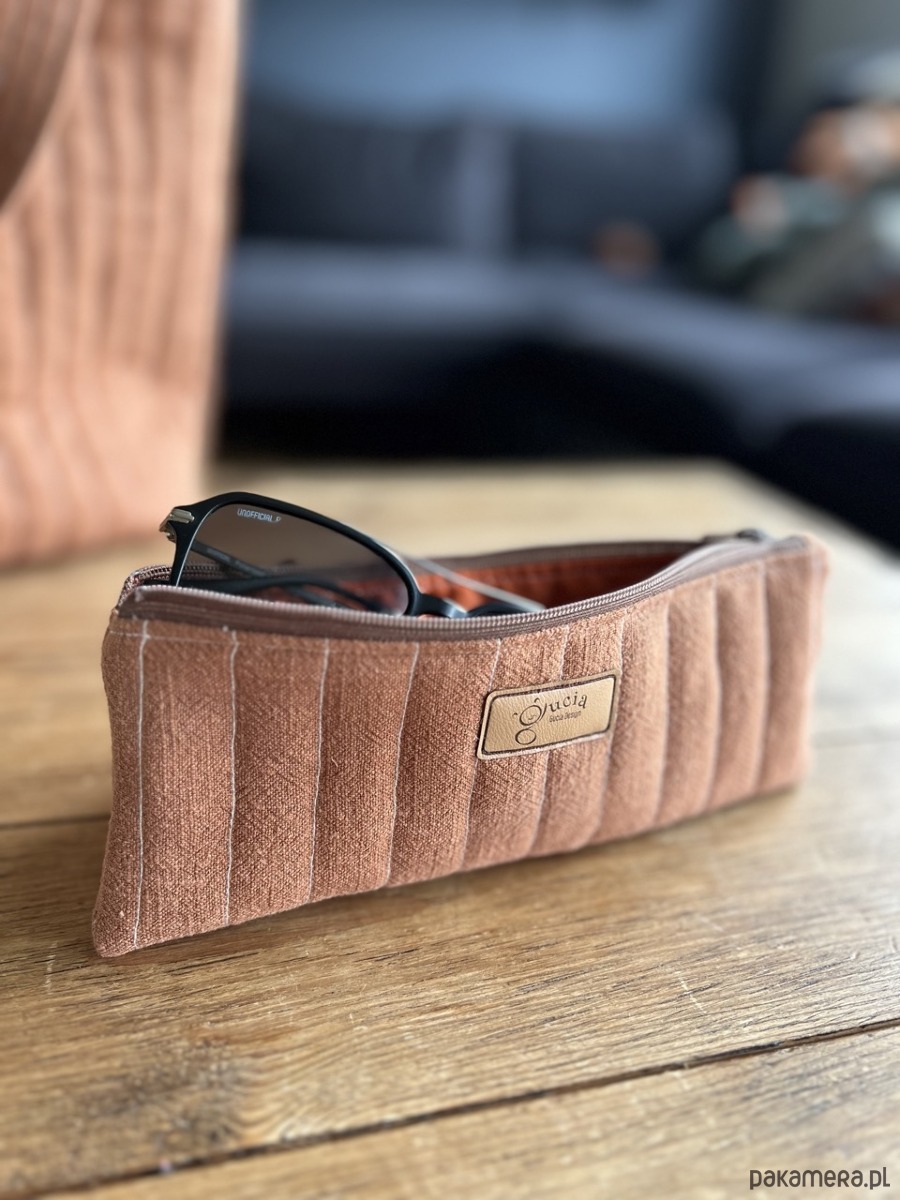 Piórnik lniany – na przybory, akcesoria lub pędzle do makijażu.