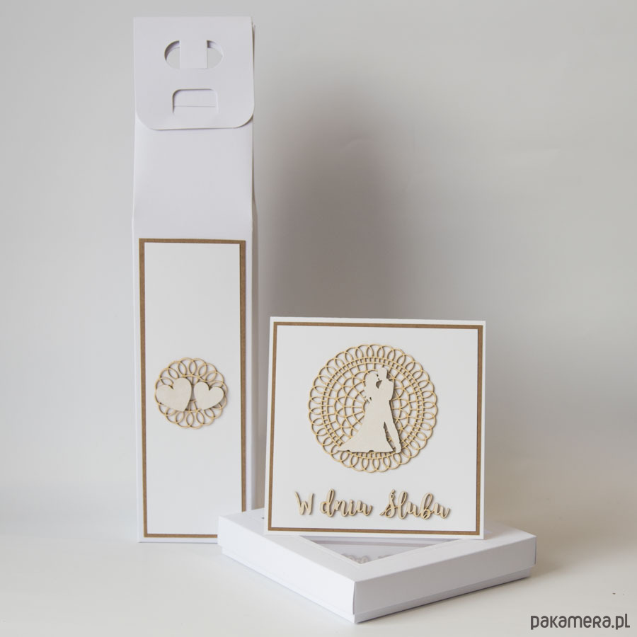 Zestaw pudełko na wino i pieniądze, kartka ślubna