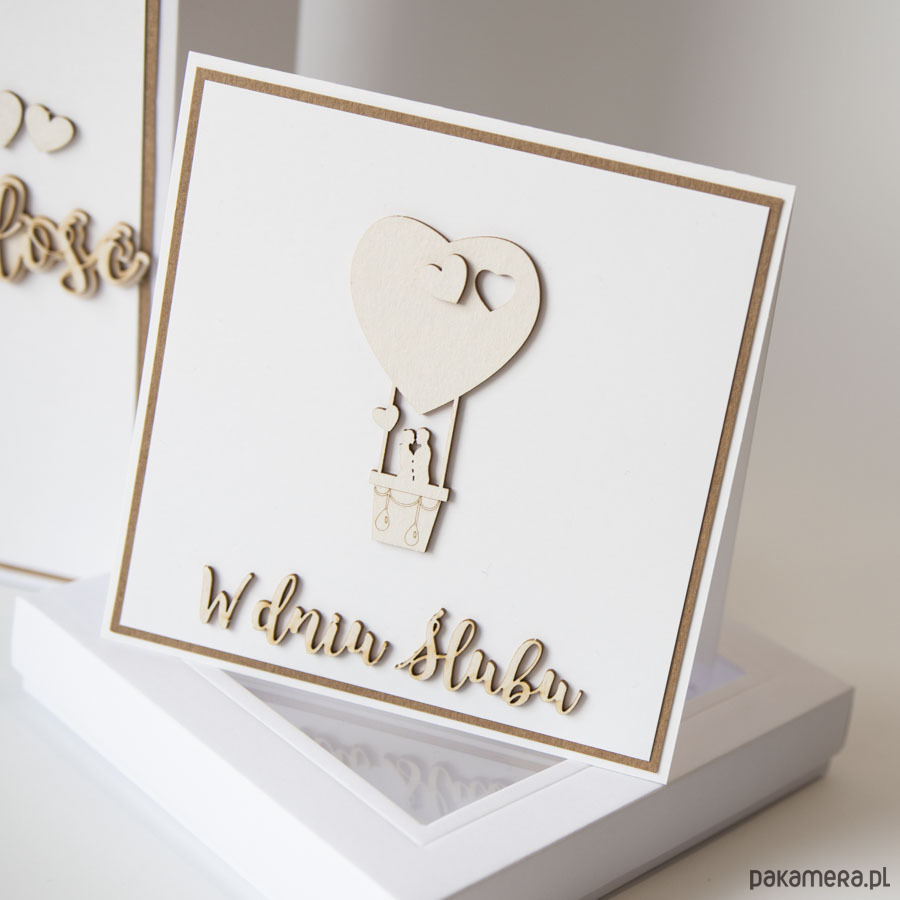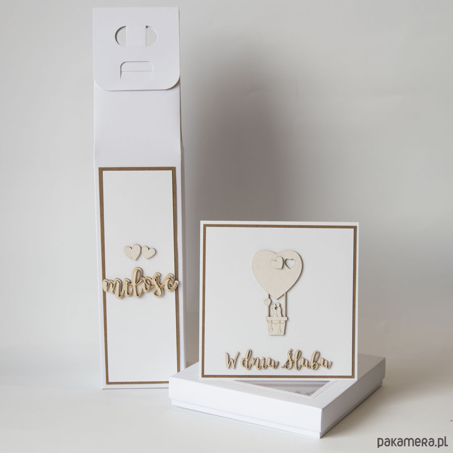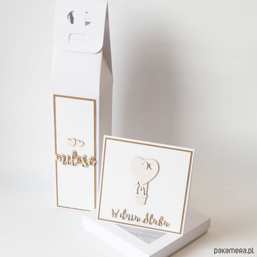 Zestaw pudełko na wino i pieniądze, kartka ślubna