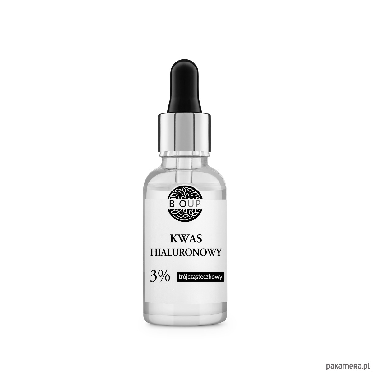 Kwas hialuronowy 3% trójcząsteczkowy – najskuteczniejsze, długotrwałe, głębokie i prawdziwe nawilżenie skóry. Dzięki niemu nie tylko szybko poprawia się wygląd i kondycja cery oraz znikają przesuszenia, ale podniesienie poziomu nawilżenia wpływa pozytywnie na zdolność skóry do regeneracji. Kwas znajduje się w szklanej butelce 30ml z pipetą.