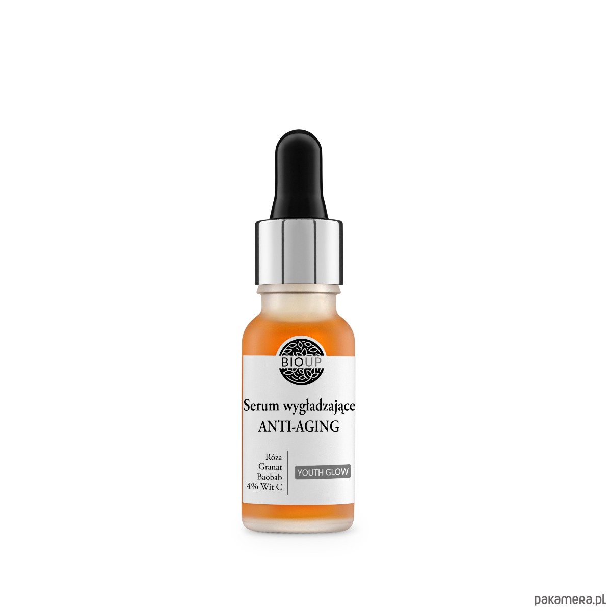 Serum wygładzające anti-aging YOUTH GLOW – dowitaminizowanie i ochrona skóry w jednym. Bogata kompozycja oparta o ekskluzywne ekologiczne oleje z owoców i nasion dzikiej róży, granatu, maliny, baobabu i wiesiołka. Wspaniale pielęgnuje, przywraca elastyczność, poprawia koloryt, chroni i wzmacnia naczynka, przeciwdziała tworzeniu się przebarwień. Duża dawka witamin C (w stężeniu 4%) i E działa silnie przeciwstarzeniowo. Serum znajduje się w butelce 15ml z transparentnego szronionego szkła z pipetą.