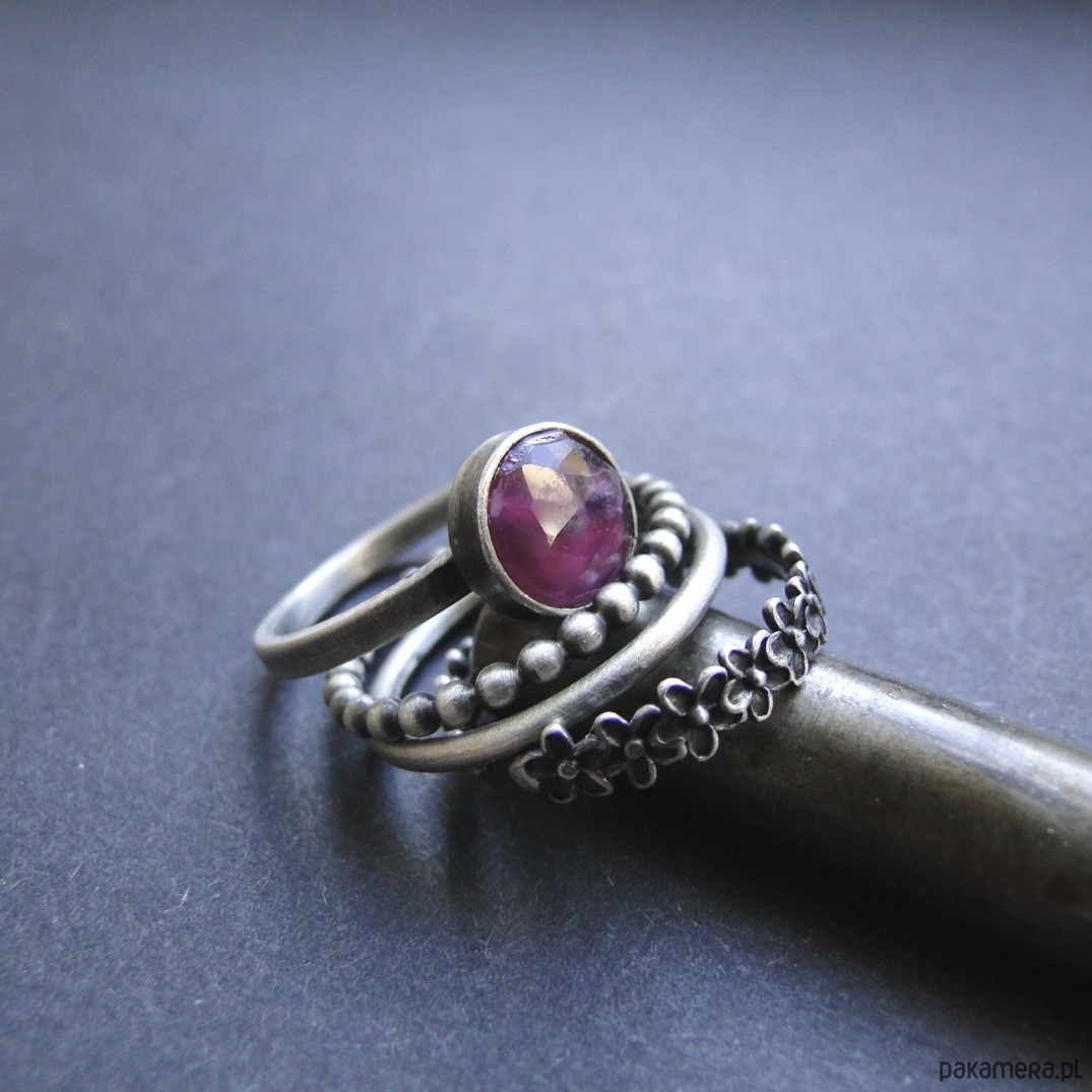 Uroczy zestaw pierścionków w pojedynczym egzemplarzu. Srebro 925 i naturalny szafir śr.8 mm. Rozmiar 12-13. Unikać moczenia w wodzie.