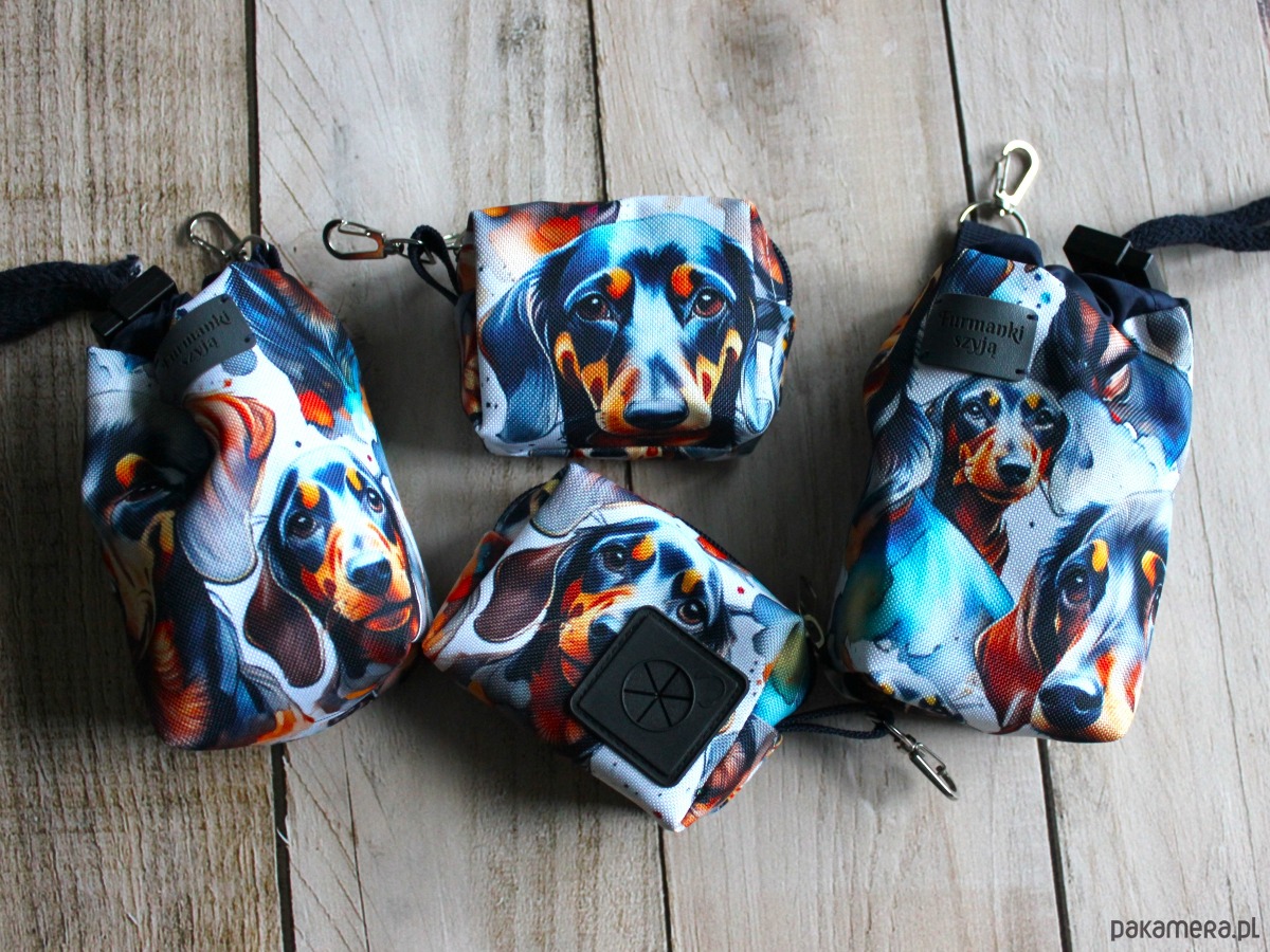 Zestaw saszetka na smaczki i woreczki # jamnik czarny