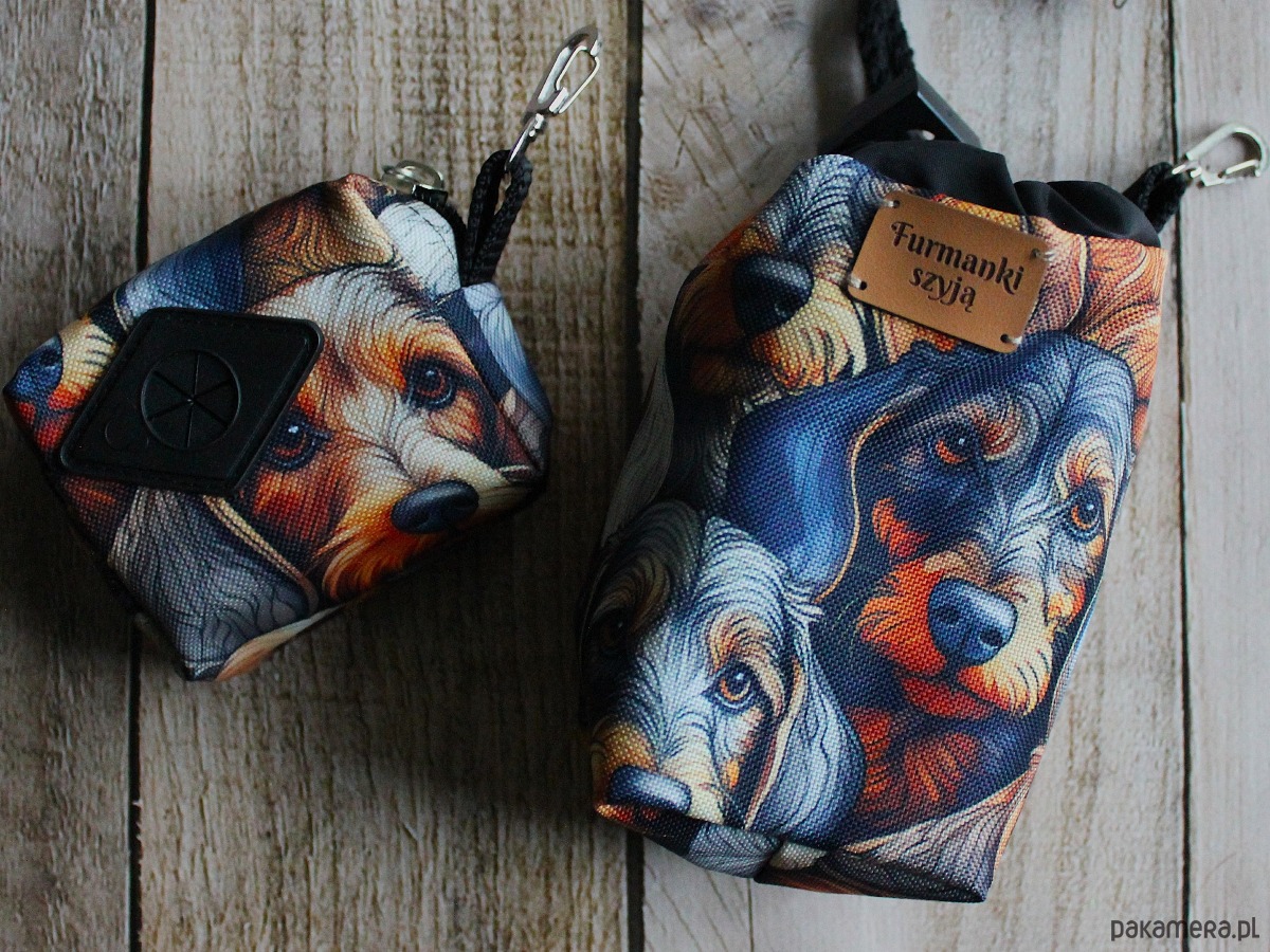 Zestaw saszetka na smaczki i woreczki # jamnik szorstkowłosy