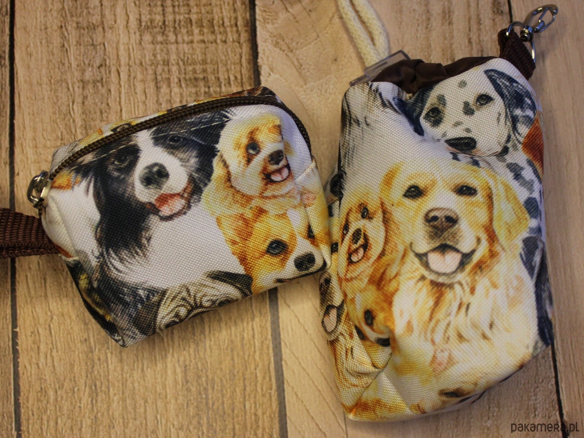 Zestaw saszetka na smaczki i woreczki # rottweiler beagle golden dalmatyńczyk