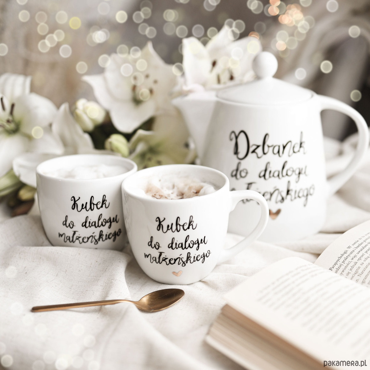 Zestaw ślubny: Dzbanek 1 litr do dialogu małżeńskiego + kubki 300 ml