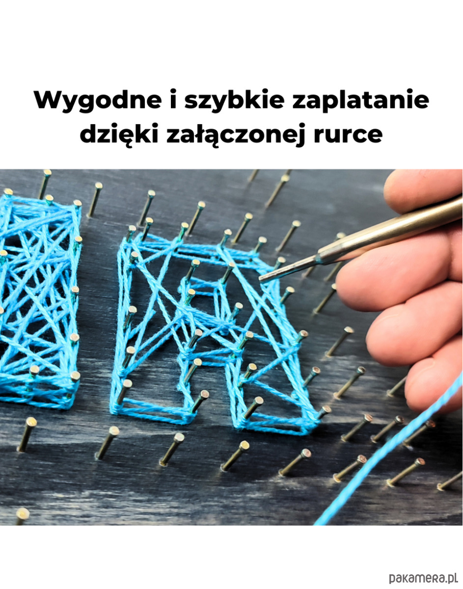 Zestaw umożliwi Ci wykonanie pięknego obrazu już za pierwszym razem! Możesz stworzyć go sam lub ze swoim dzieckiem. Możecie podzielić się pracą, np. Ty wbij gwoździe, a dziecko zajmie się zaplataniem. Dzięki załączonym akcesoriom wbicie gwoździ i zaplatanie będzie znacznie prostsze. Wihajster-uchwyt pomoże wbić gwoździe prosto i na tą samą wysokość, a rurka sprawi, że plecenie będzie bardzo wygodne nawet dla mniejszych rączek.