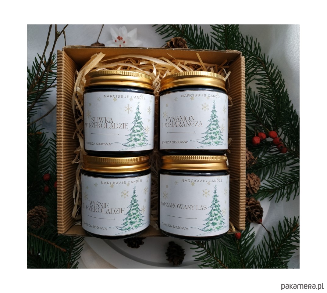 Zestaw czterech świec sojowych o pojemności 120ml z drewnianym knotem: