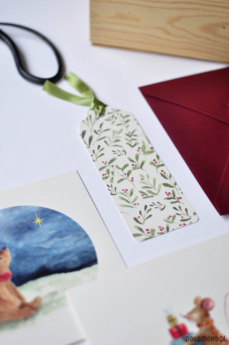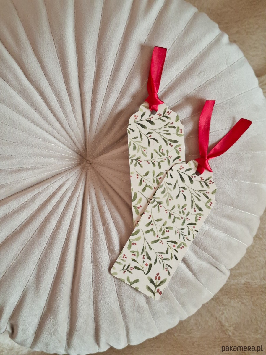 Zakładką do książki na papierze ekologicznym z domieszka pulpy owocowo-warzywnej, dekoracyjne wyciecie, kolor wstążeczki wybierany losowo zielony lub czerwony