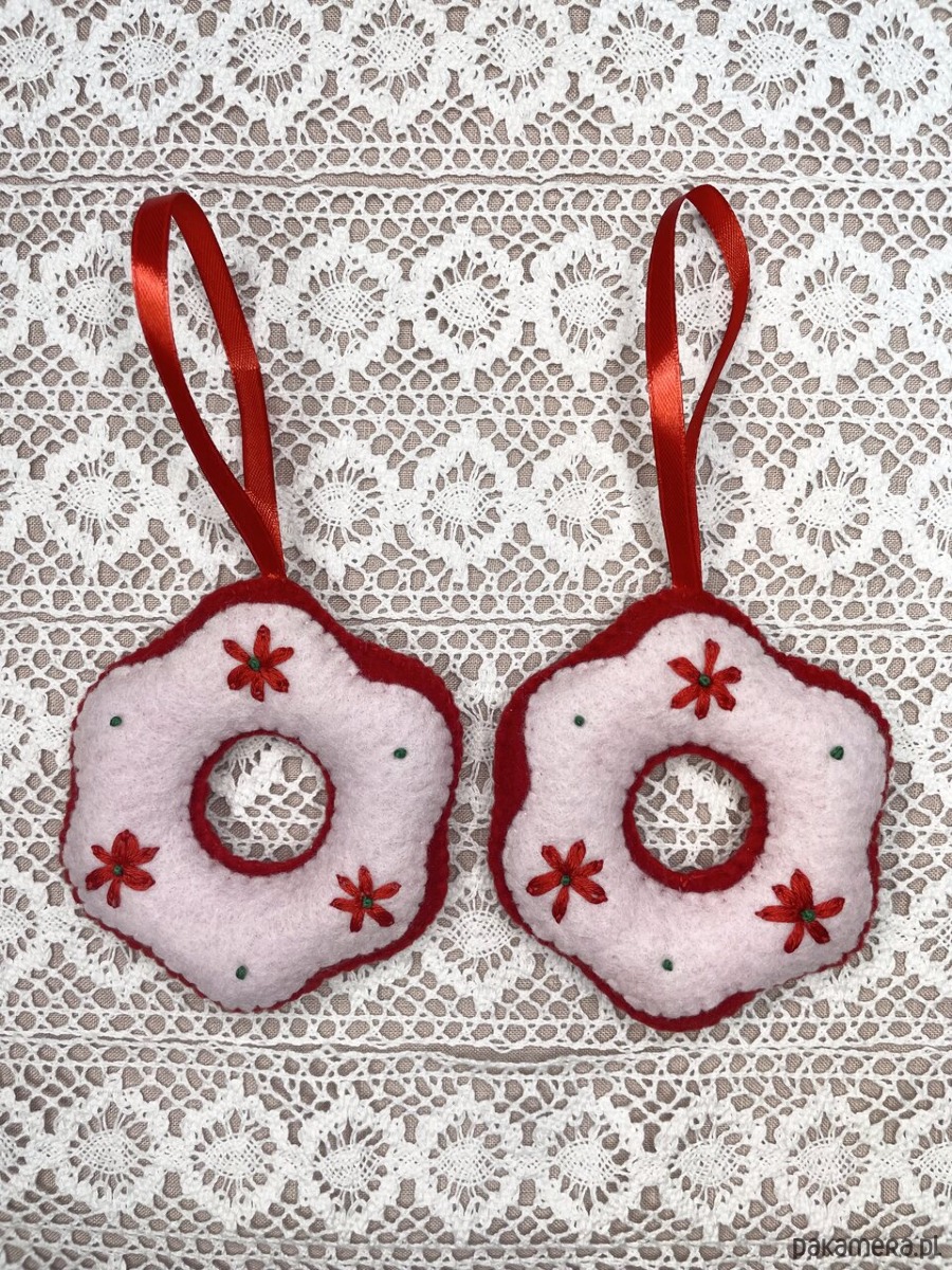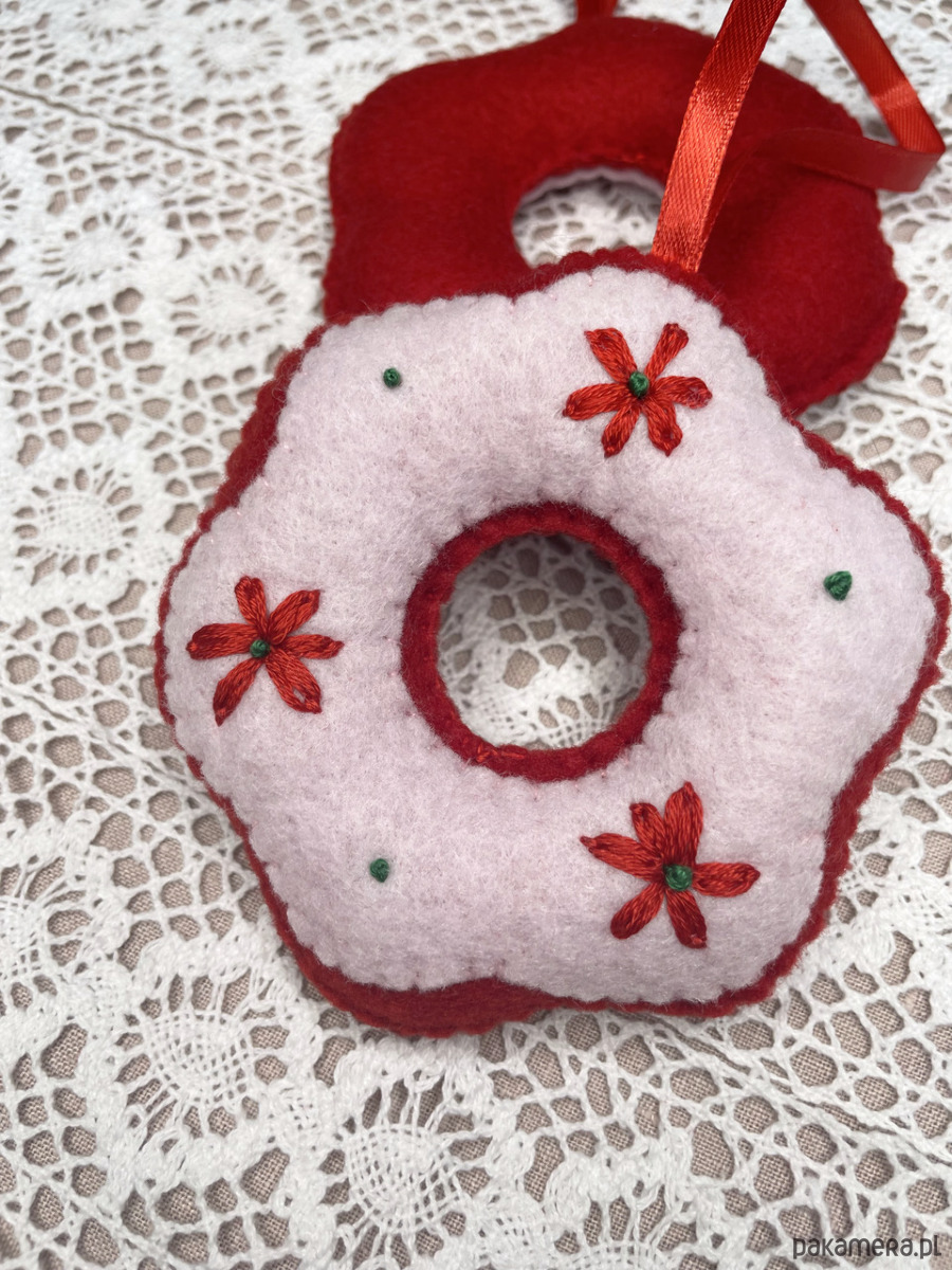 Zestaw dwóch kółek świątecznych, wykonane z czerwonego filcu ☃️