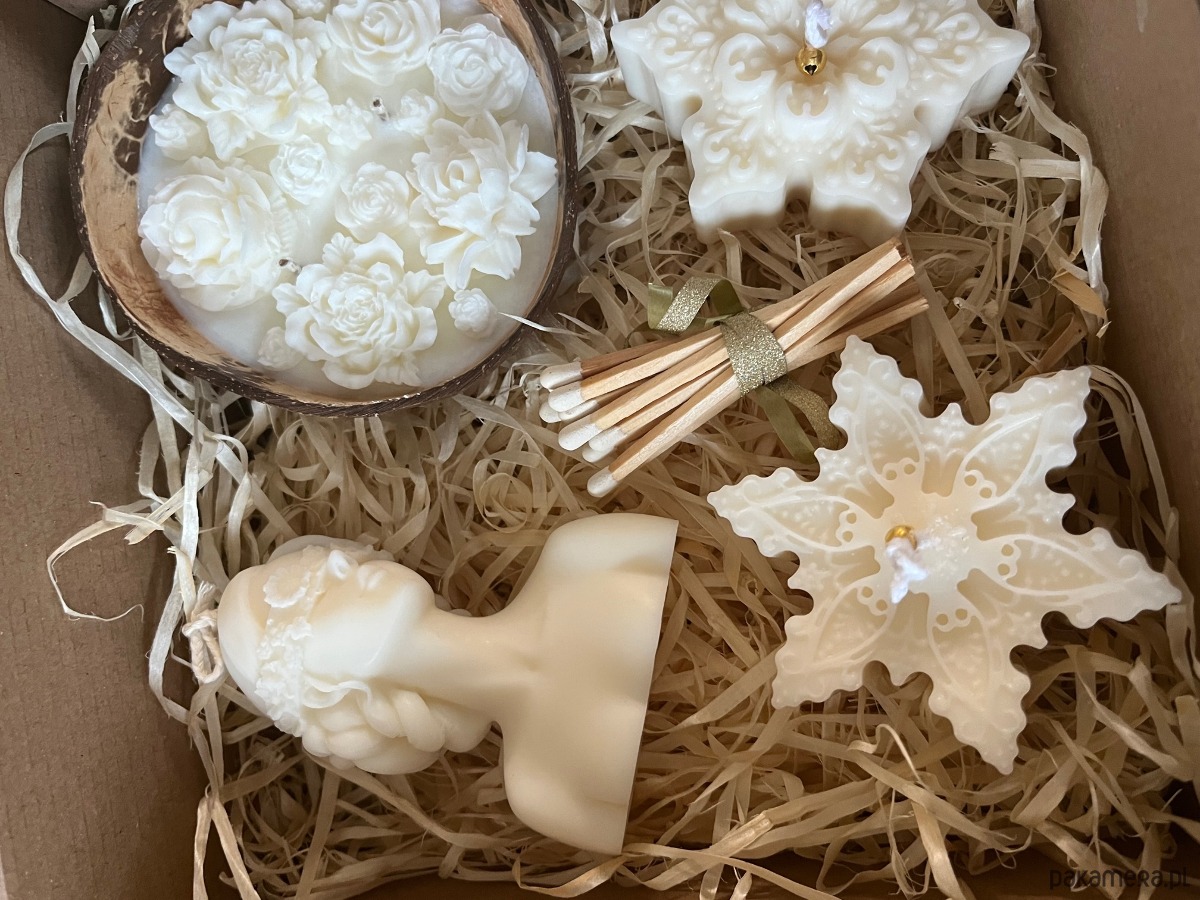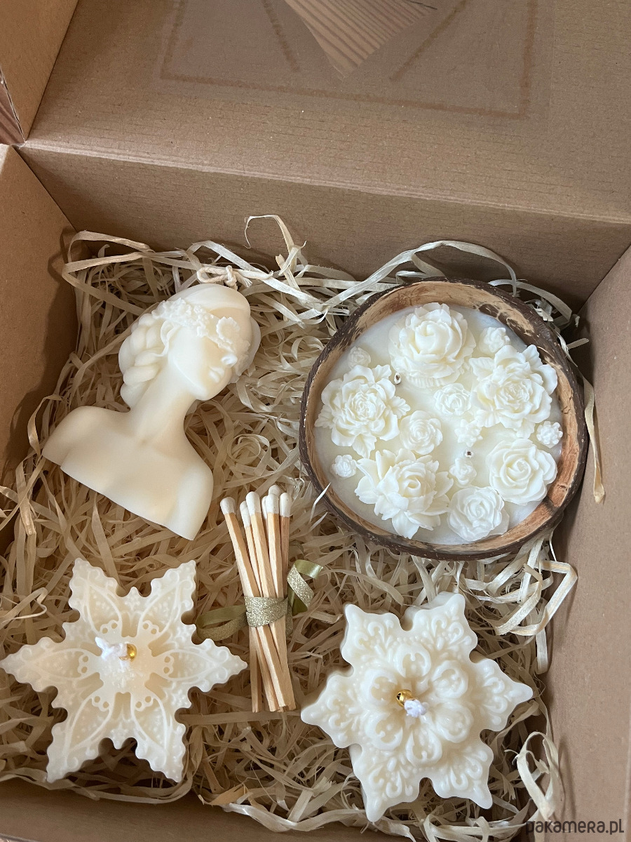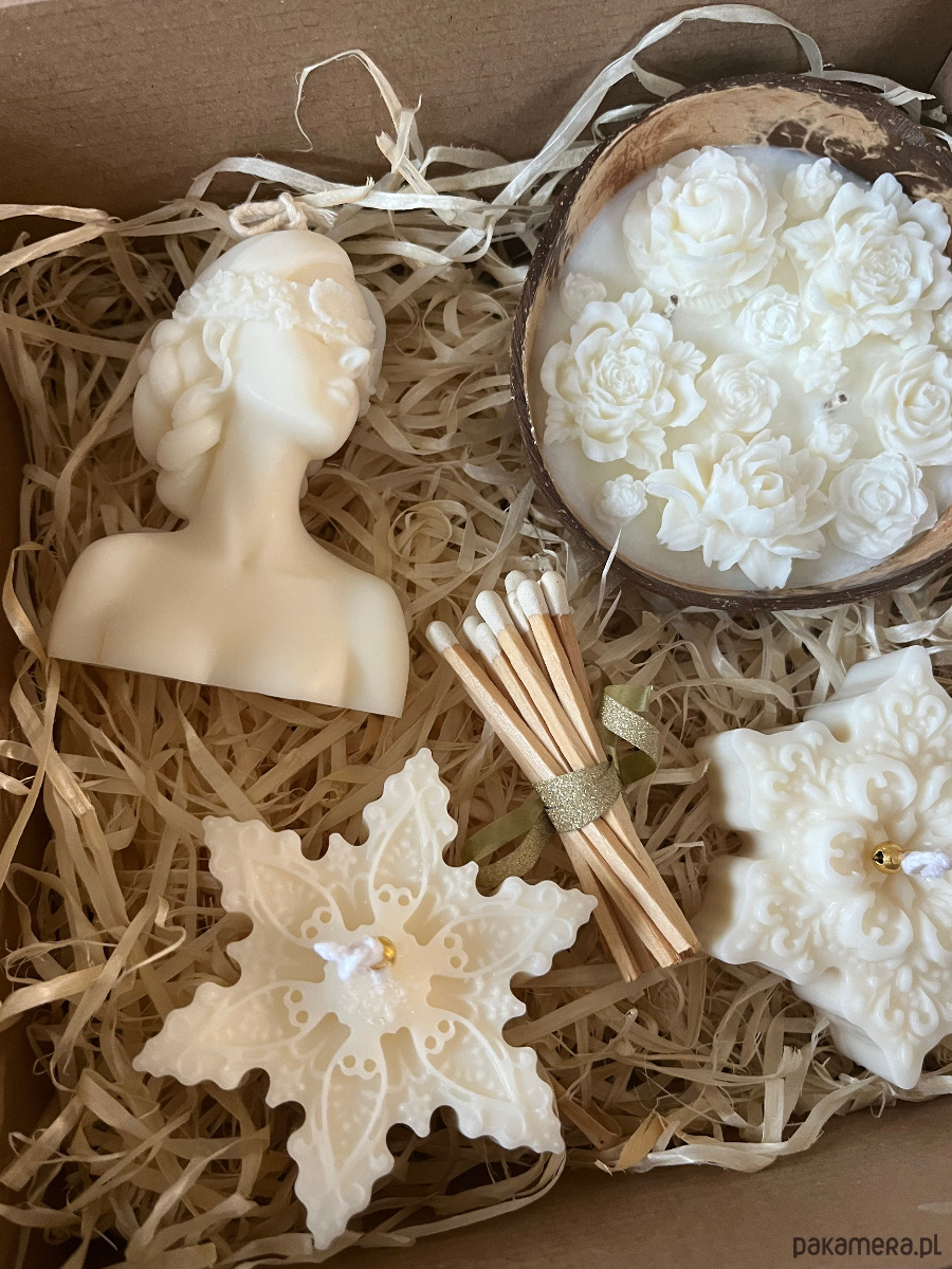 Uniwersalny prezent: Zestaw doskonale sprawdzi się jako upominek na Boże Narodzenie, urodziny czy Dzień Kobiet (śnieżynki można zamienić na świeczki w kształcie kwiata piwonii)