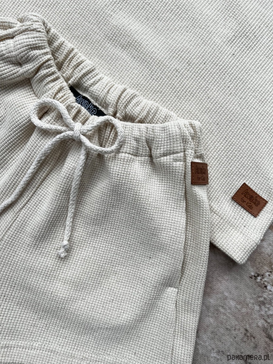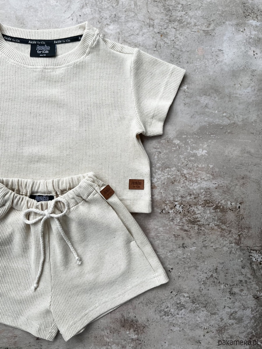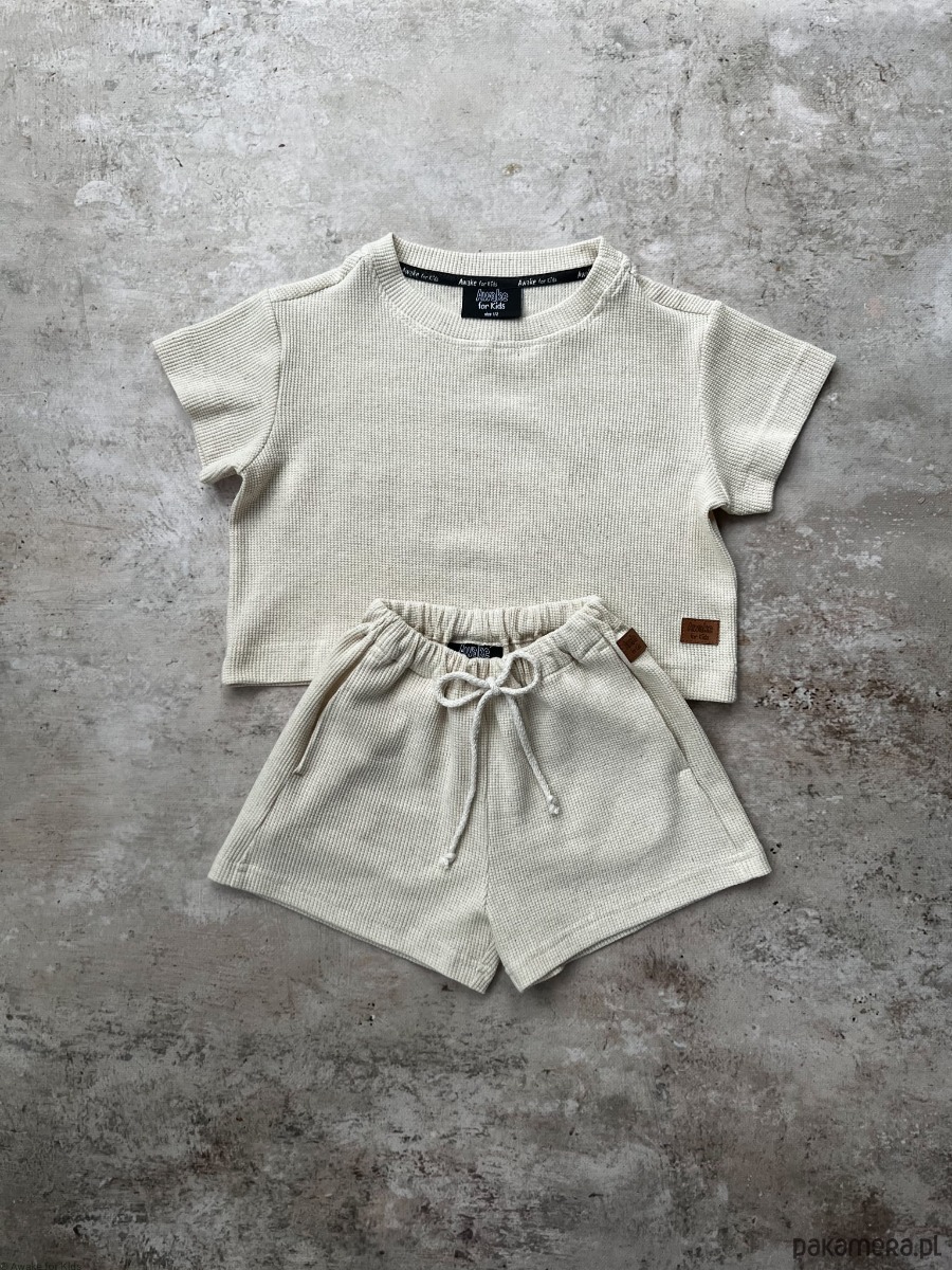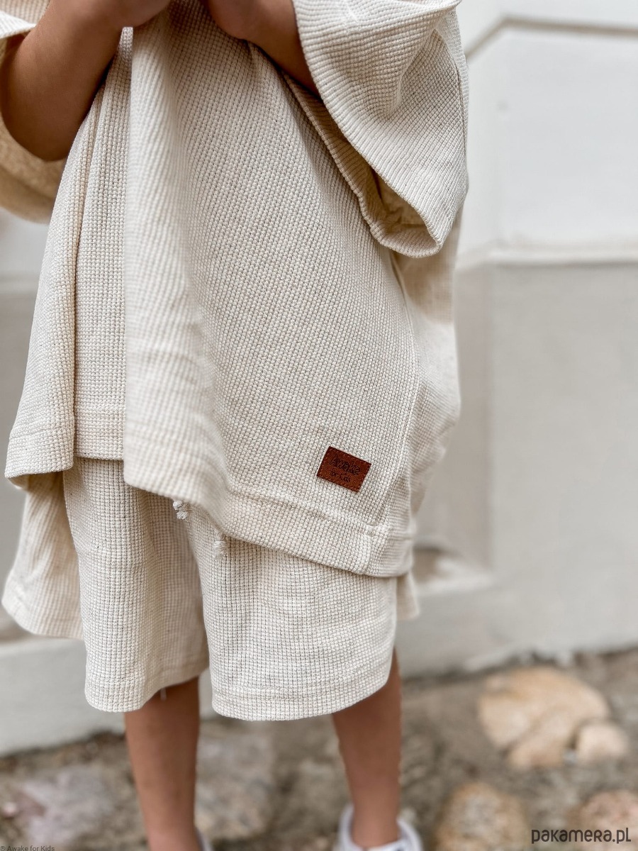 T-shirt oversize i spodenki uszyte z wafelka lnianego w kolorze naturalnym.