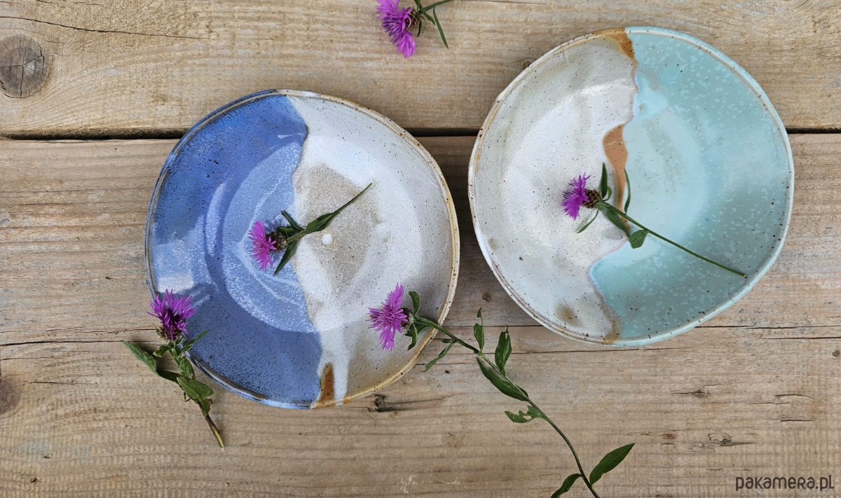 Zestaw 2 ręcznie wykonanych talerzyków ceramicznych.