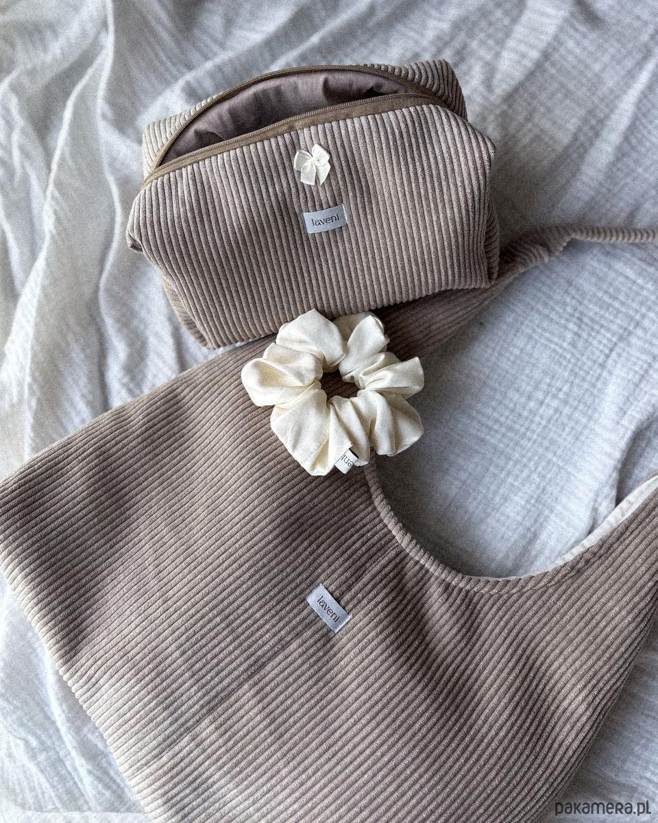 Zestaw Torebka & Kosmetyczka & Scrunchie Sand