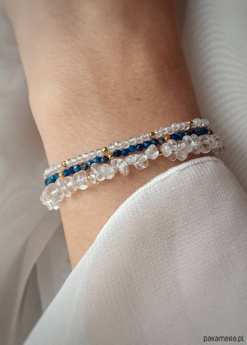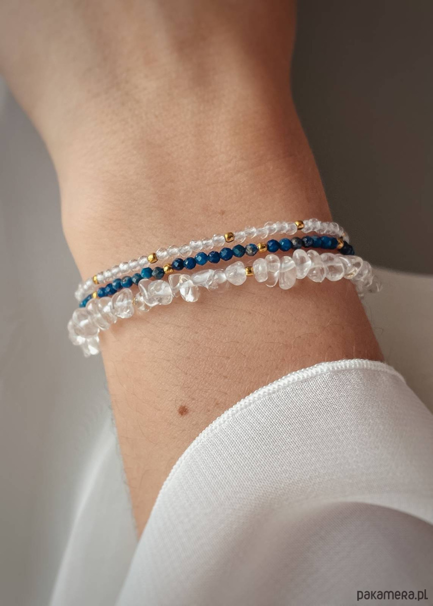 Zestaw Trzech Bransoletek z zapięciem - Kryształ Górski i Lapis Lazuli