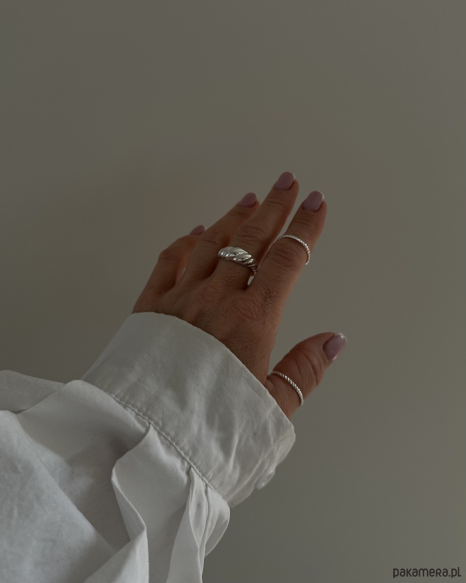 Obrączka dopasowuje się do rozmiaru palca poprzez delikatne rozginanie lub dociskanie obręczy.