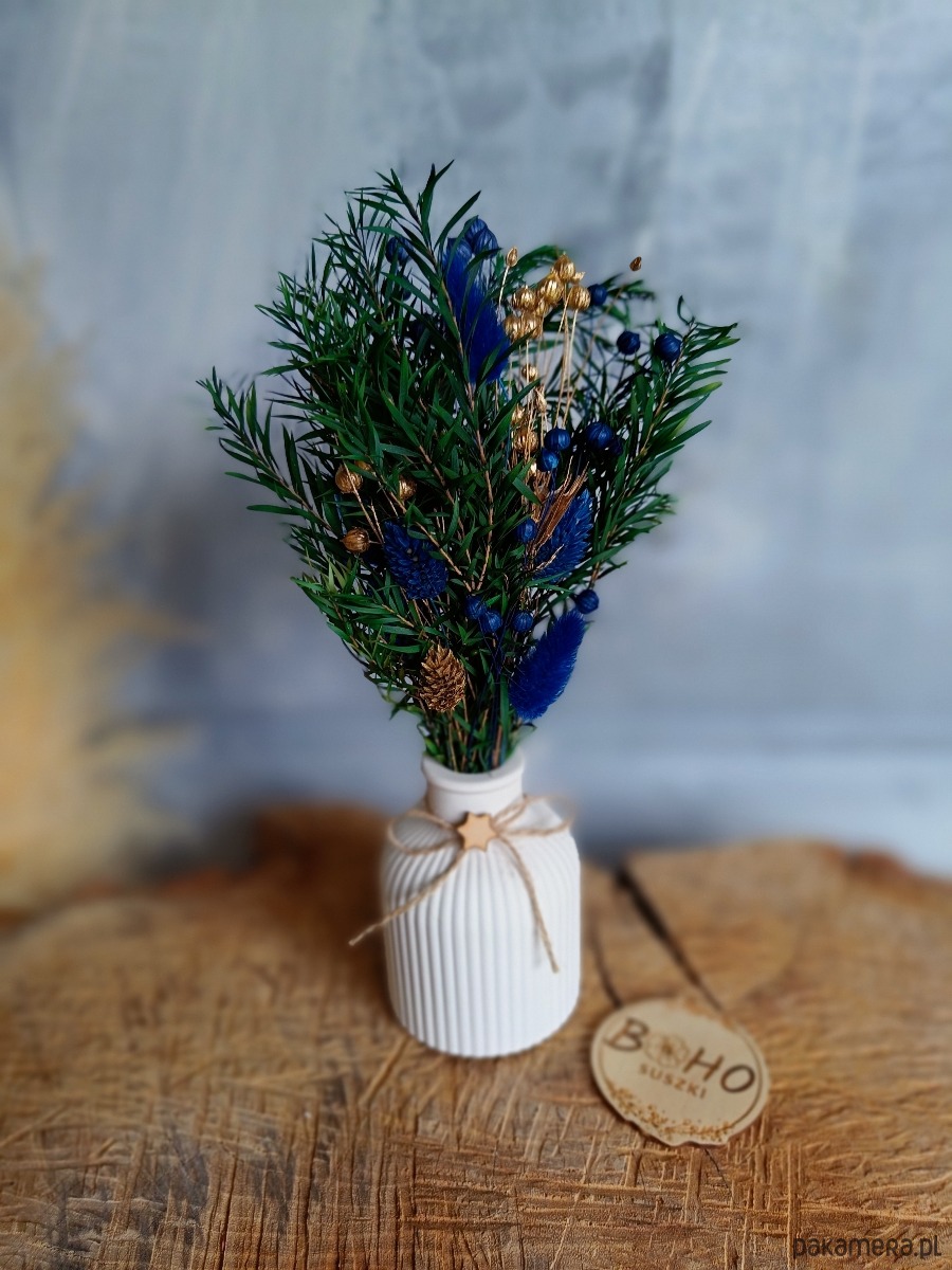 🎄 Świąteczny zestaw upominkowy - mały wazon z bukietem suszonych kwiatów
