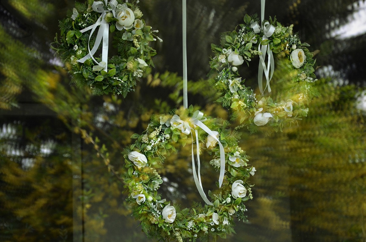 Zestaw wianków "anielskich" do zawieszenia na oknie.