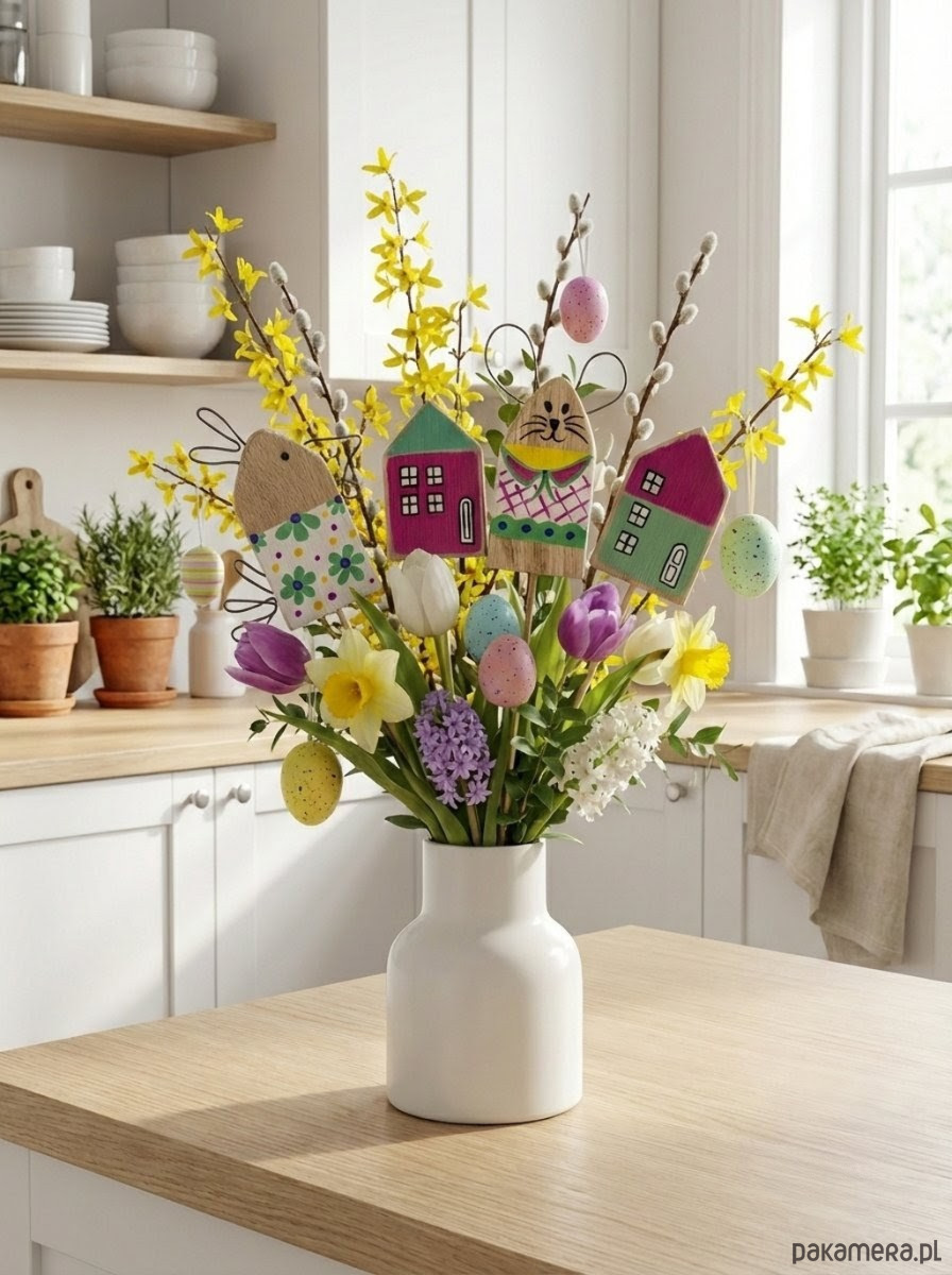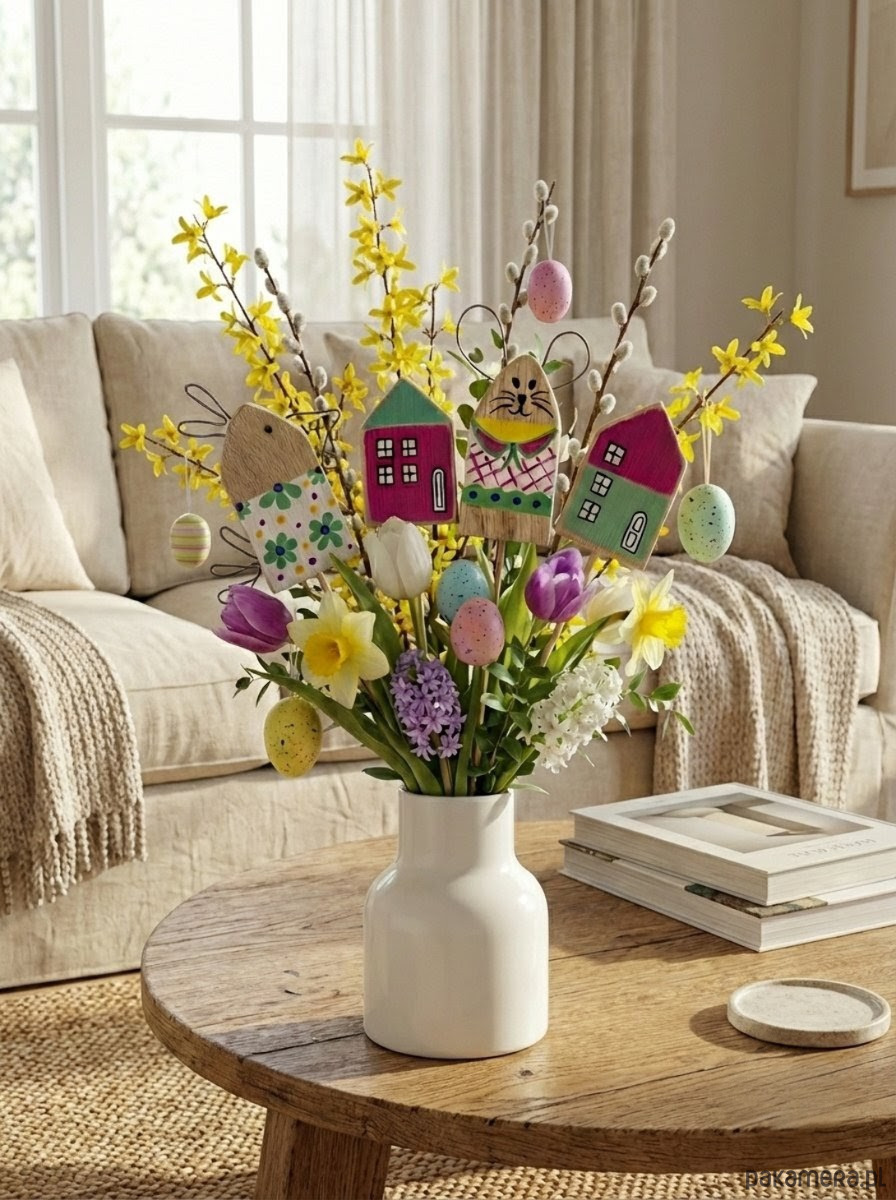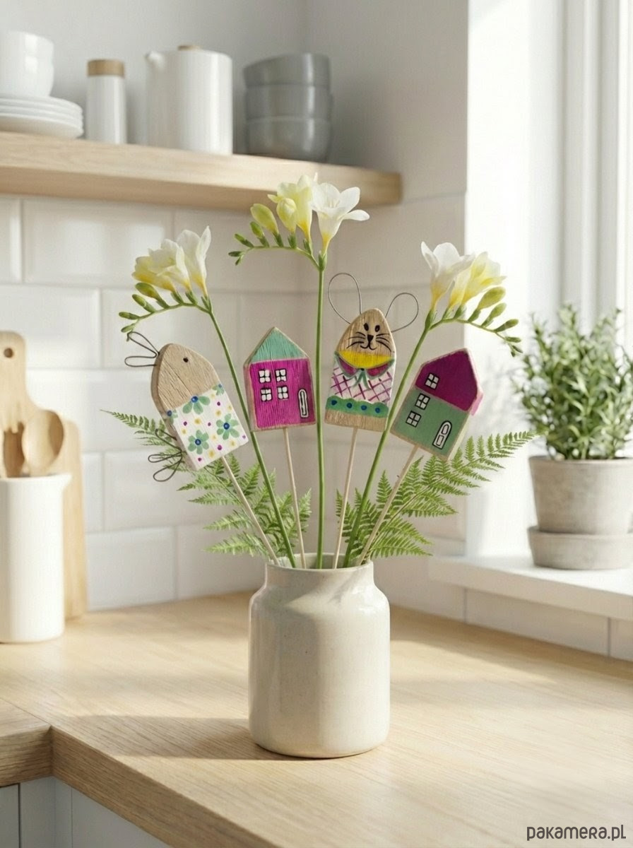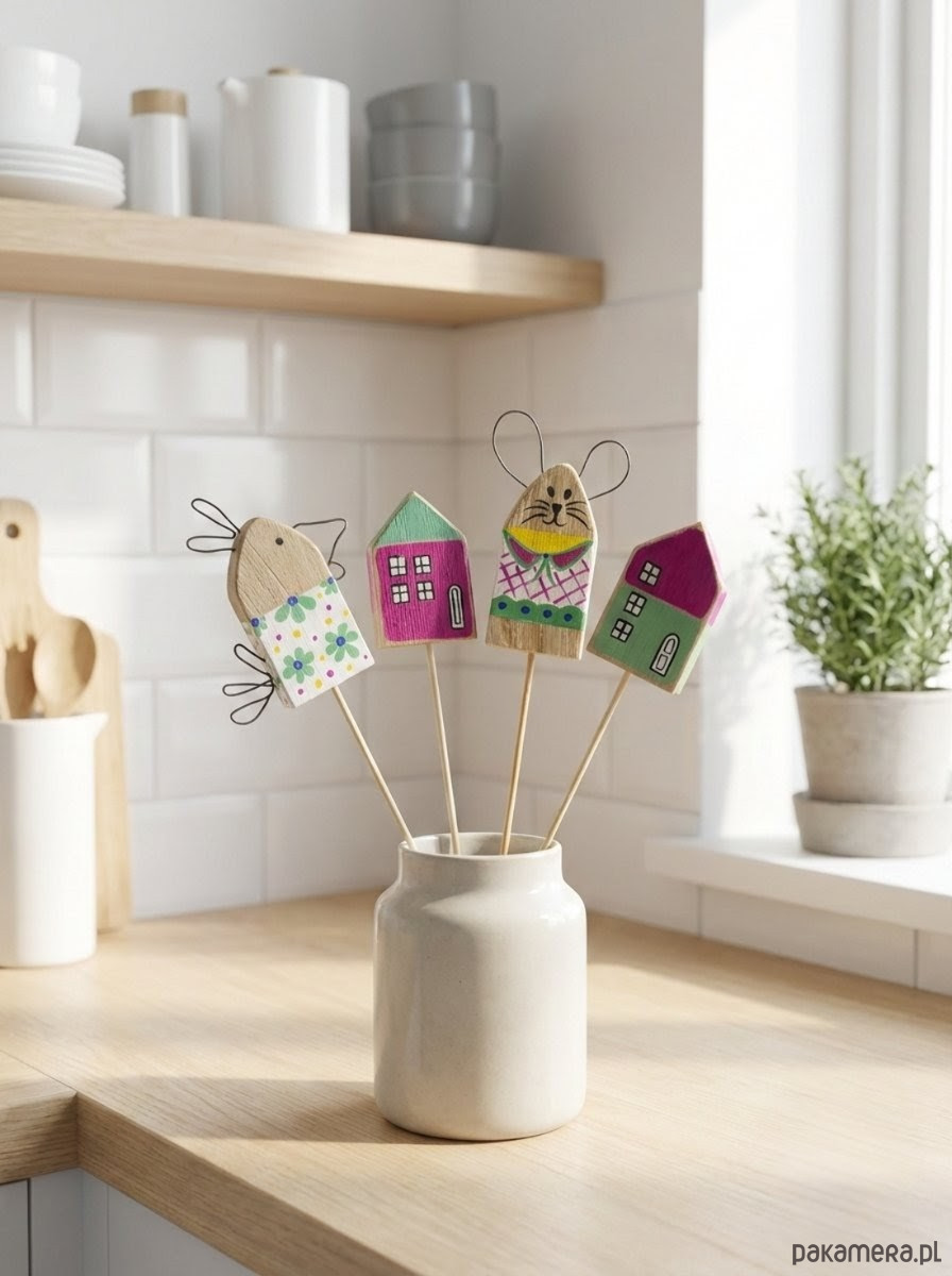 Zestaw Wielkanocny Drewniane Ozdoby na piku w Stylu Skandynawskim
